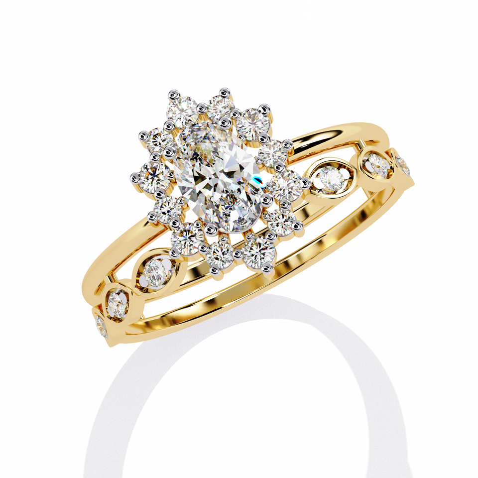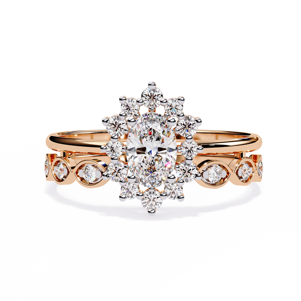 แหวนเพชรทรงรี 0.65 กะรัต รับรองโดย IGI เพชรเพาะเลี้ยงแบบโซลิแทร์ วินเทจ แหวนคู่แบบ Eternity สำหรับหมั้นและแต่งงาน ทอง 14K 18K
