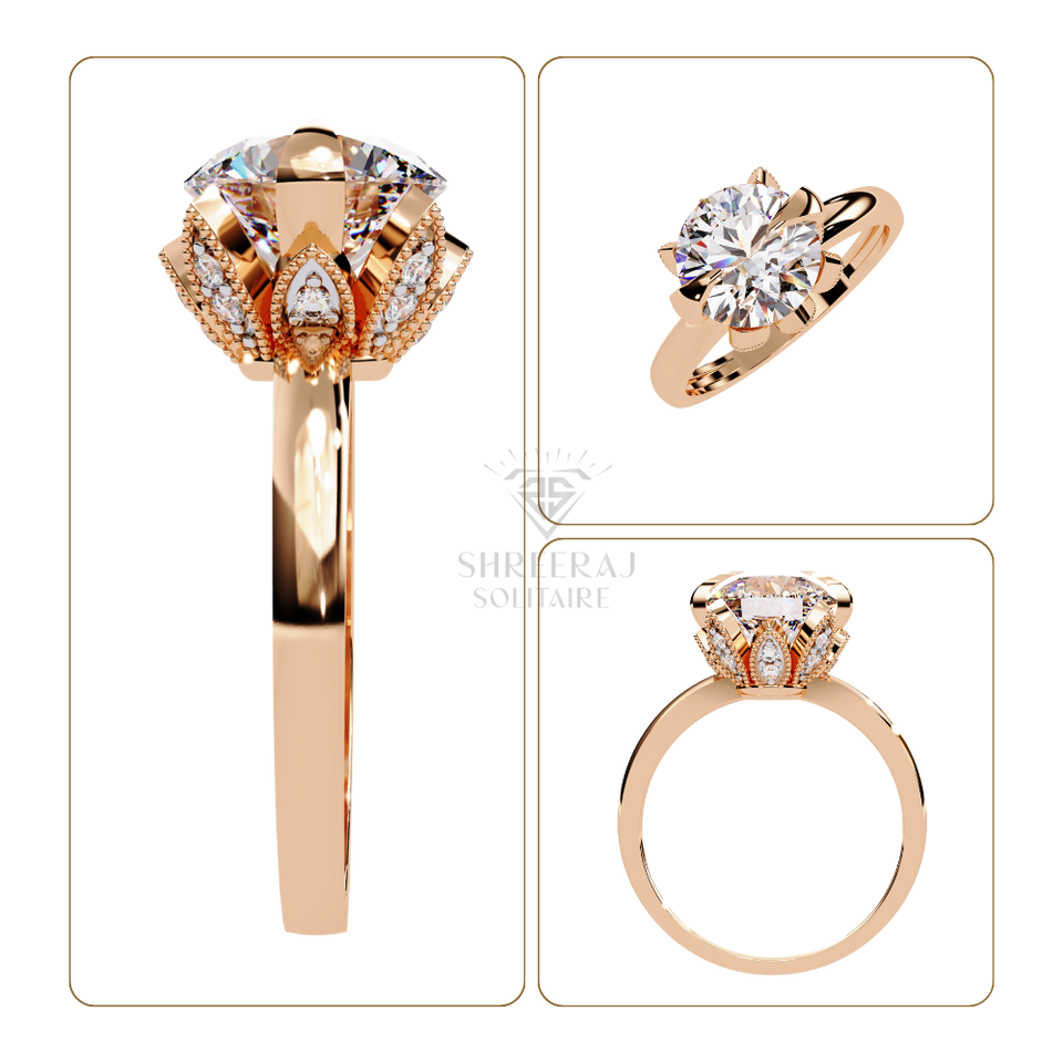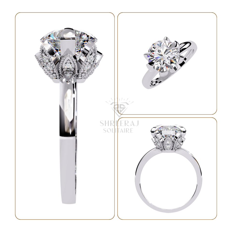 แหวนเพชรทรงกลมเจียระไนแบบบริลเลียนต์ น้ำหนัก 1.00 กะรัต ได้รับการรับรองจาก IGI ตัวเรือนทองคำ 14K ดีไซน์รูปดอกไม้ เพชรเพาะเลี้ยงคุณภาพสูง เหมาะสำหรับเป็นของขวัญวันครบรอบ