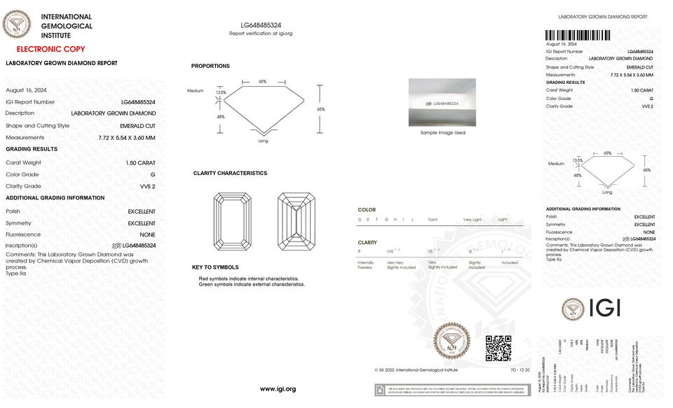 ได้รับการรับรองจาก IGI 1.50 CT 7.72mm มรกตเจียระไนในห้องทดลองเพื่อการส่องประกายเพชรจีสีใส VVS2สำหรับจี้