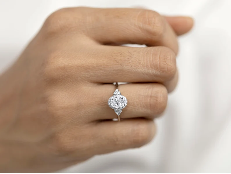แหวนเพชรแล็บ IGI Certified 1 กะรัต ทองคำแท้ 18K ทรงวงรี แหวนเพชรเม็ดเดี่ยว ดีไซน์หรูหรา สำหรับผู้หญิง เหมาะสำหรับการขอแต่งงาน