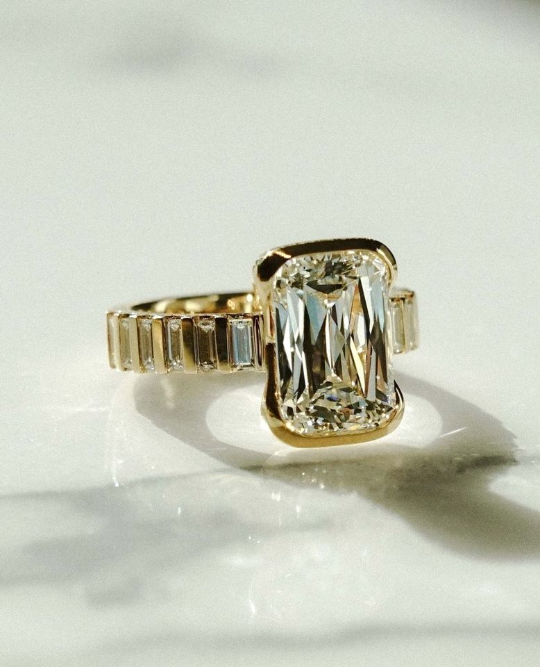 แหวนหมั้นเพชรทรงเหลี่ยมมรกต 14K ทองคำขาว ได้รับการรับรองจาก IGI ฝังแบบ Bezel Setting สำหรับผู้ชาย งานแต่งงานสุดโรแมนติก