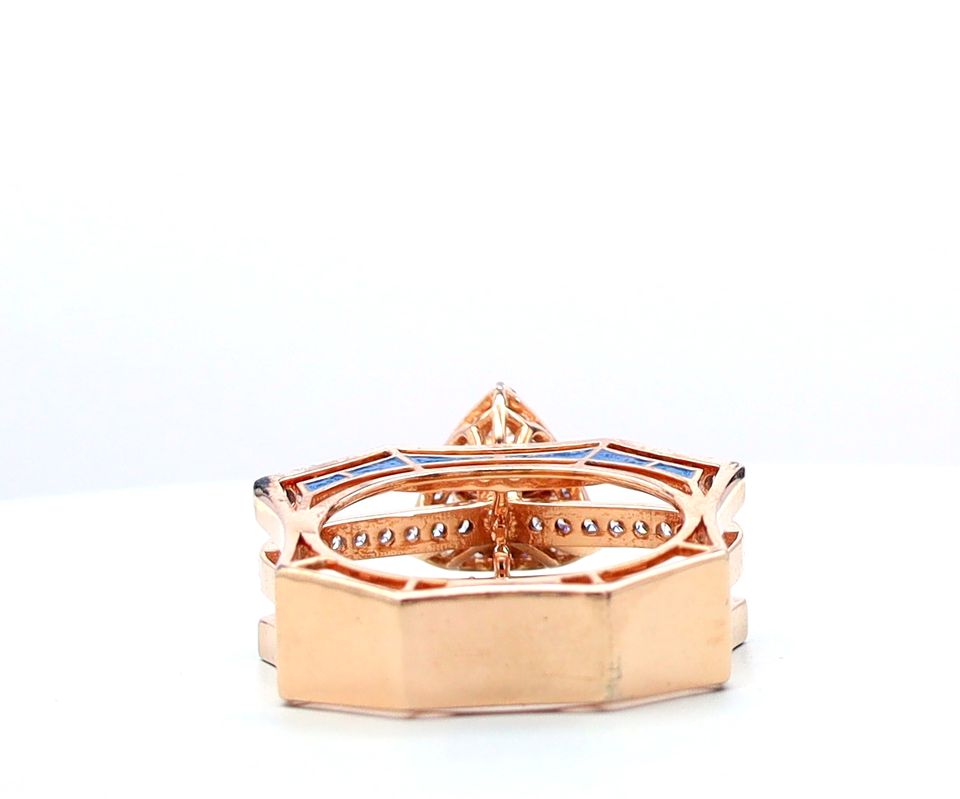 Igi ได้รับการรับรอง14K กุหลาบทองสามก้านค็อกเทลแหวนเพชรธรรมชาติดีไซน์คลัสเตอร์สามเหลี่ยม