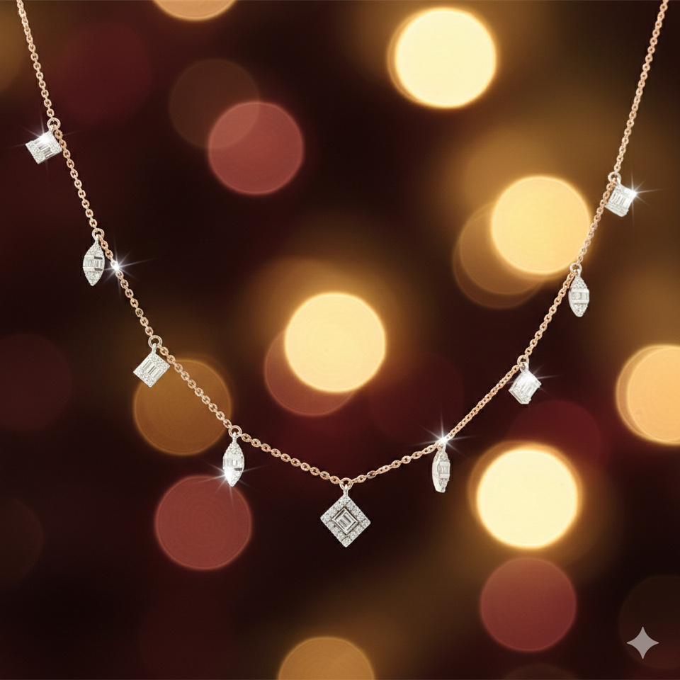 สร้อยคอทองชมพู 18k ประดับเพชรแท้รับรองจาก IGI