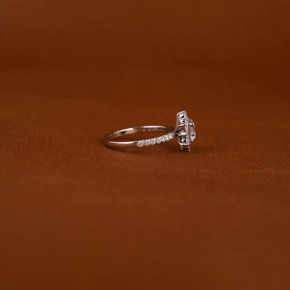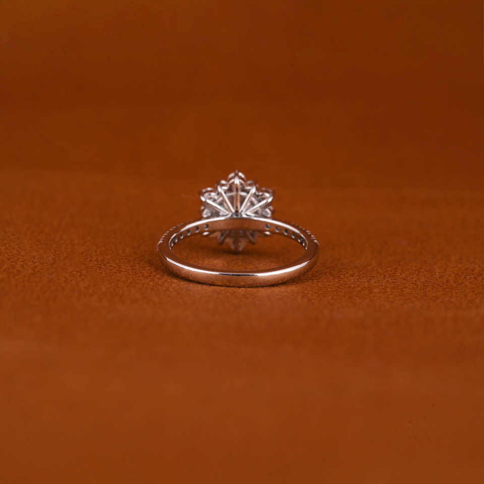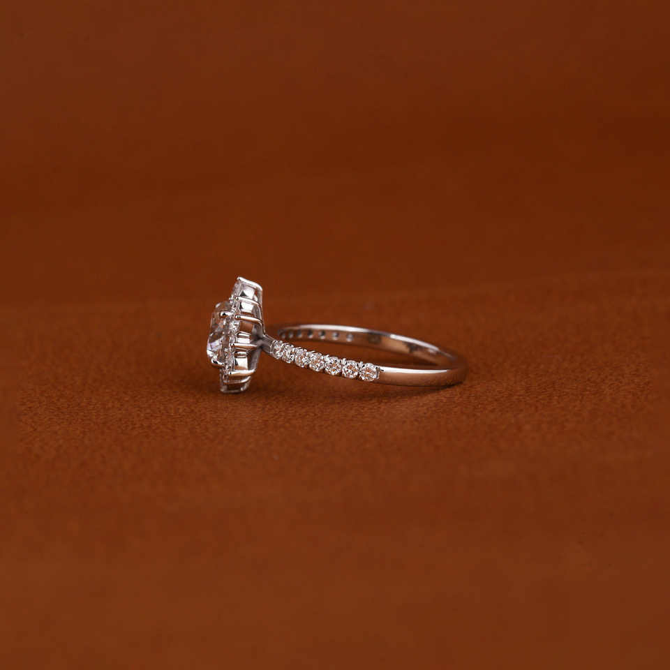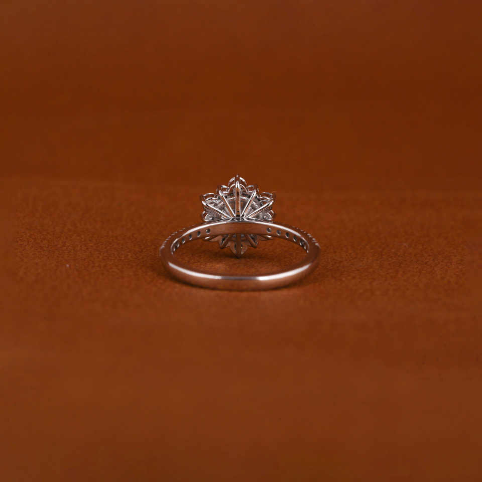 Igi ได้รับการรับรอง18KT แข็งทองแหวนหมั้นแหวนดอกไม้รูปดอกไม้ตัดในห้องปฏิบัติการปลูกเพชรด้วยการตั้งค่ารัศมีที่ทันสมัย