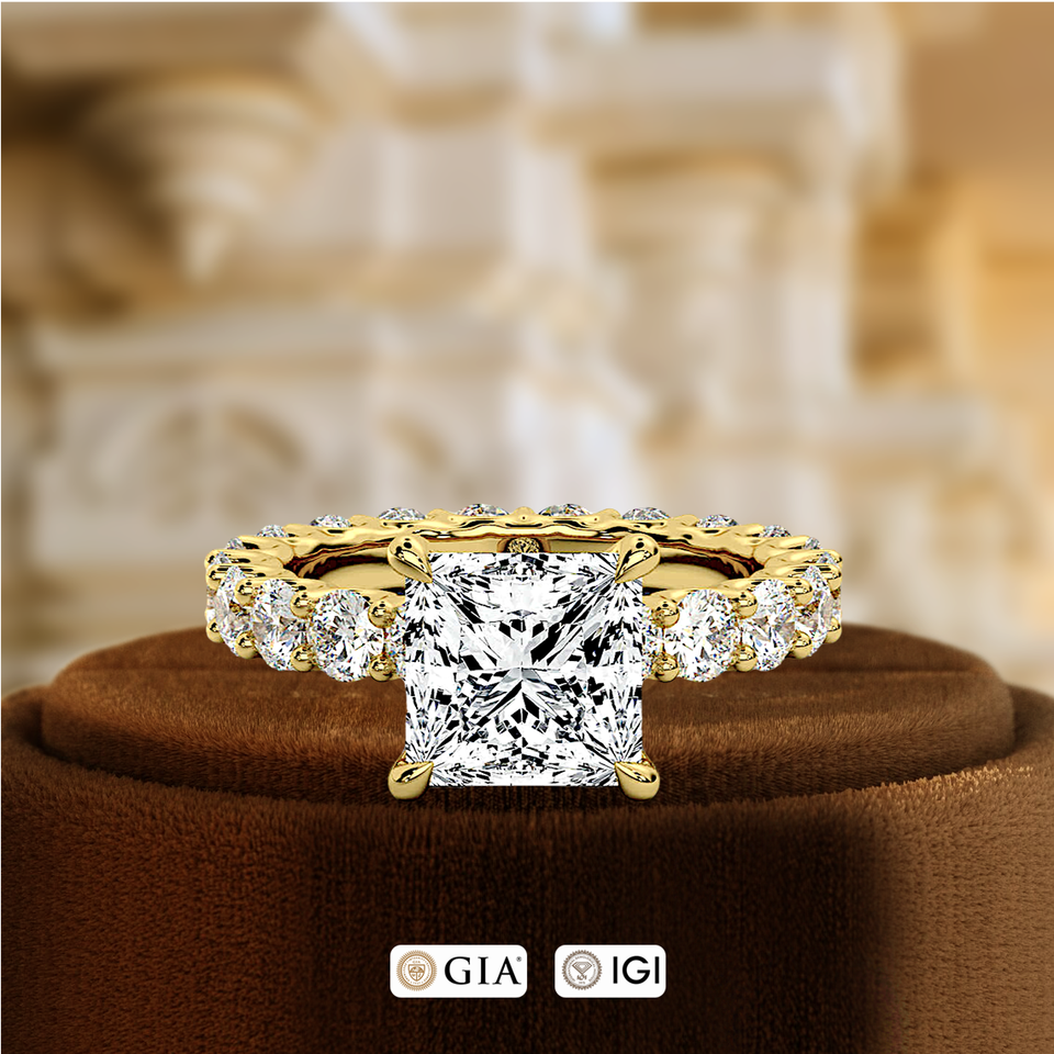 แหวนหมั้นเพชรเจียระไนทรงเจ้าหญิง 1 กะรัต ผลิตในห้องปฏิบัติการ ได้รับการรับรองจาก IGI ประดับเพชรเต็มวง แหวนแต่งงานทองคำ 14k สีเหลืองทอง สำหรับเป็นของขวัญวันครบรอบ