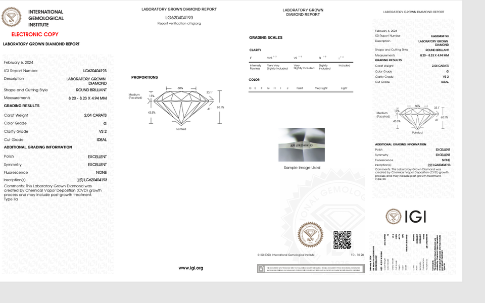 Igi ได้รับการรับรอง2.04 CT เพชรที่โตในห้องปฏิบัติการหลวม VS2ความคมชัดดีเยี่ยมสี G เลเซอร์เจียระไนแบบเพชร RJ สำหรับทำเครื่องประดับ