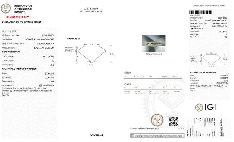 IGI Certified 2 Carat Brilliant Marquise Cut Lab Grown Loose Diamond EF Color VS Clarity Diamond For Engagement Ring