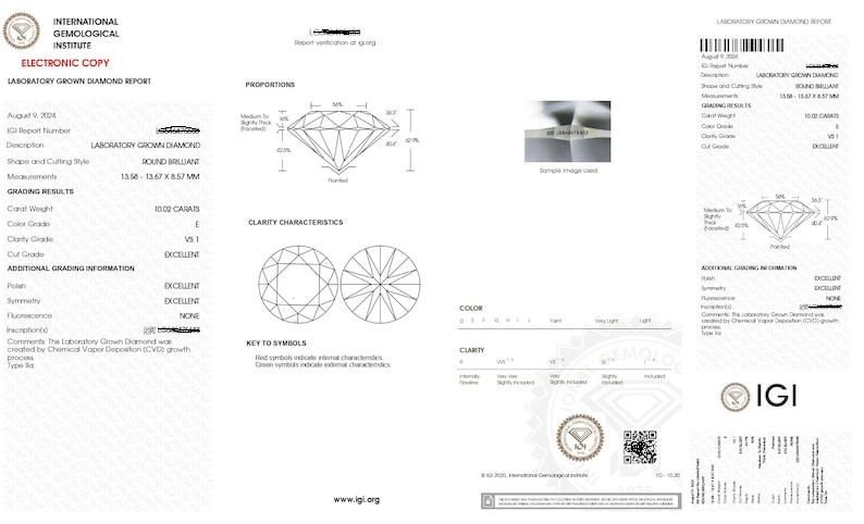 เพชรแล็บโกรนทรงกลมเจียระไนแบบบริลเลียนท์ น้ำหนัก 3.02 กะรัต ระดับ E VS1 ได้รับการรับรองจาก IGI สำหรับการผลิตเครื่องประดับ ผลิตโดยผู้ผลิตจากอินเดีย