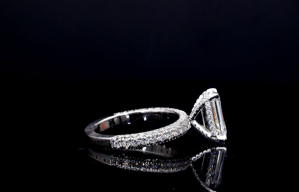 แหวนหมั้นเพชรทรงเอเมอรัลด์ 3.50 กะรัต รุ่น Aniva LR15521 ได้รับการรับรองจาก IGI เพชรเพาะเลี้ยง ทอง 14K สไตล์ชาติพันธุ์