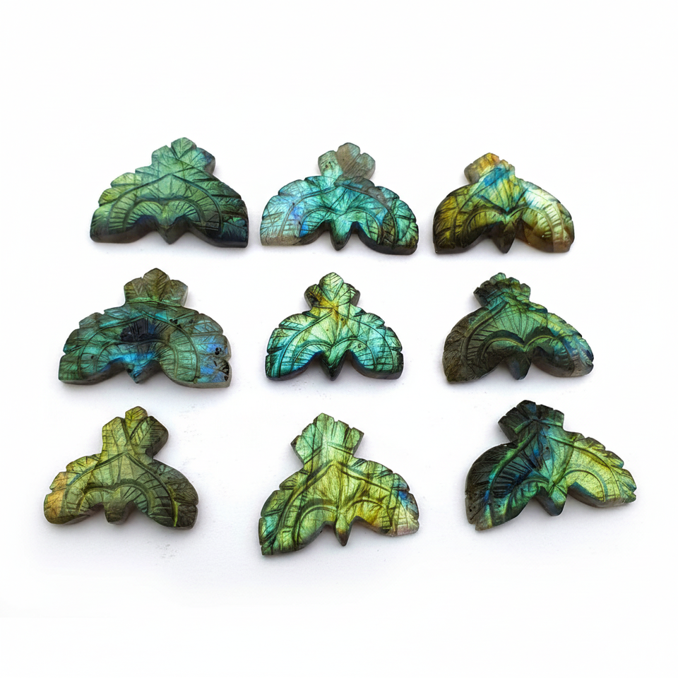 Igi หินอัญมณีลาบราดอไรต์ธรรมชาติขนาด36ซม. แกะสลักด้วยมือแบนรูปนกอินทรีอบสีเขียวอัญมณีหลวม