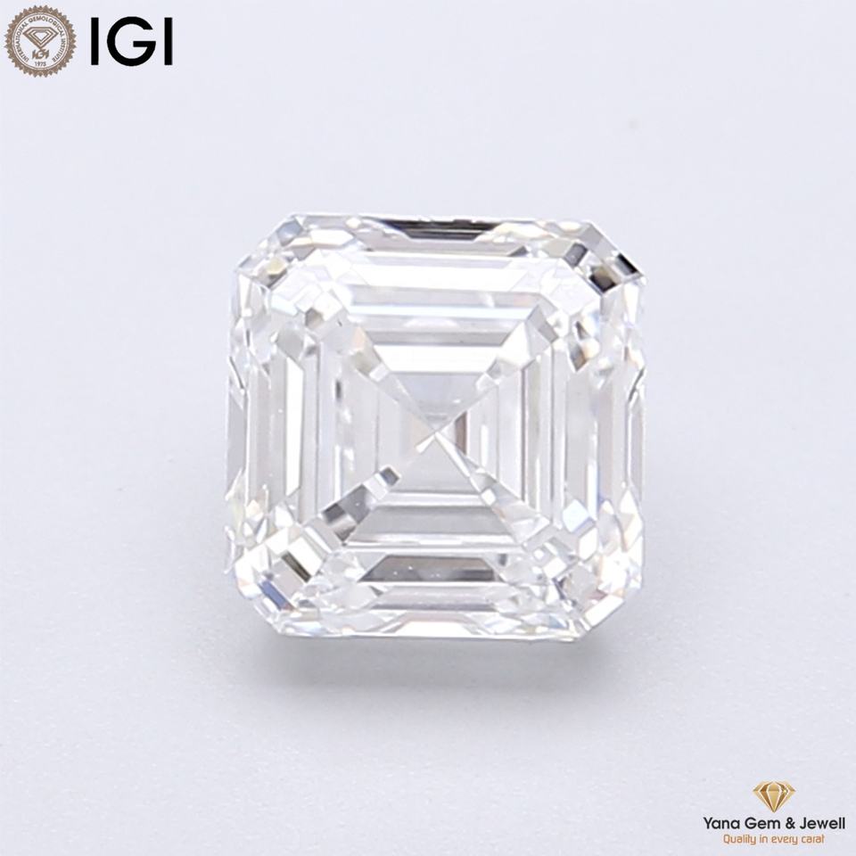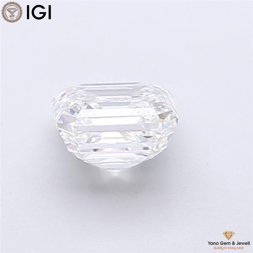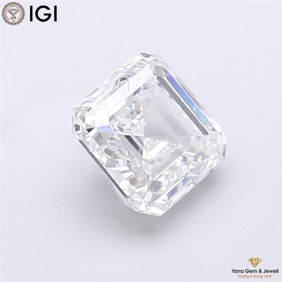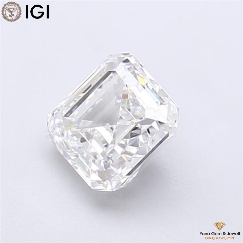 เพชร CVD ทรงแอสเชอร์ น้ำหนัก 5.00 กะรัต ได้รับการรับรองจาก IGI สี D ความสะอาดระดับ VS1 เหมาะสำหรับเป็นเพชรเม็ดเดี่ยวกลางวงแหวน
