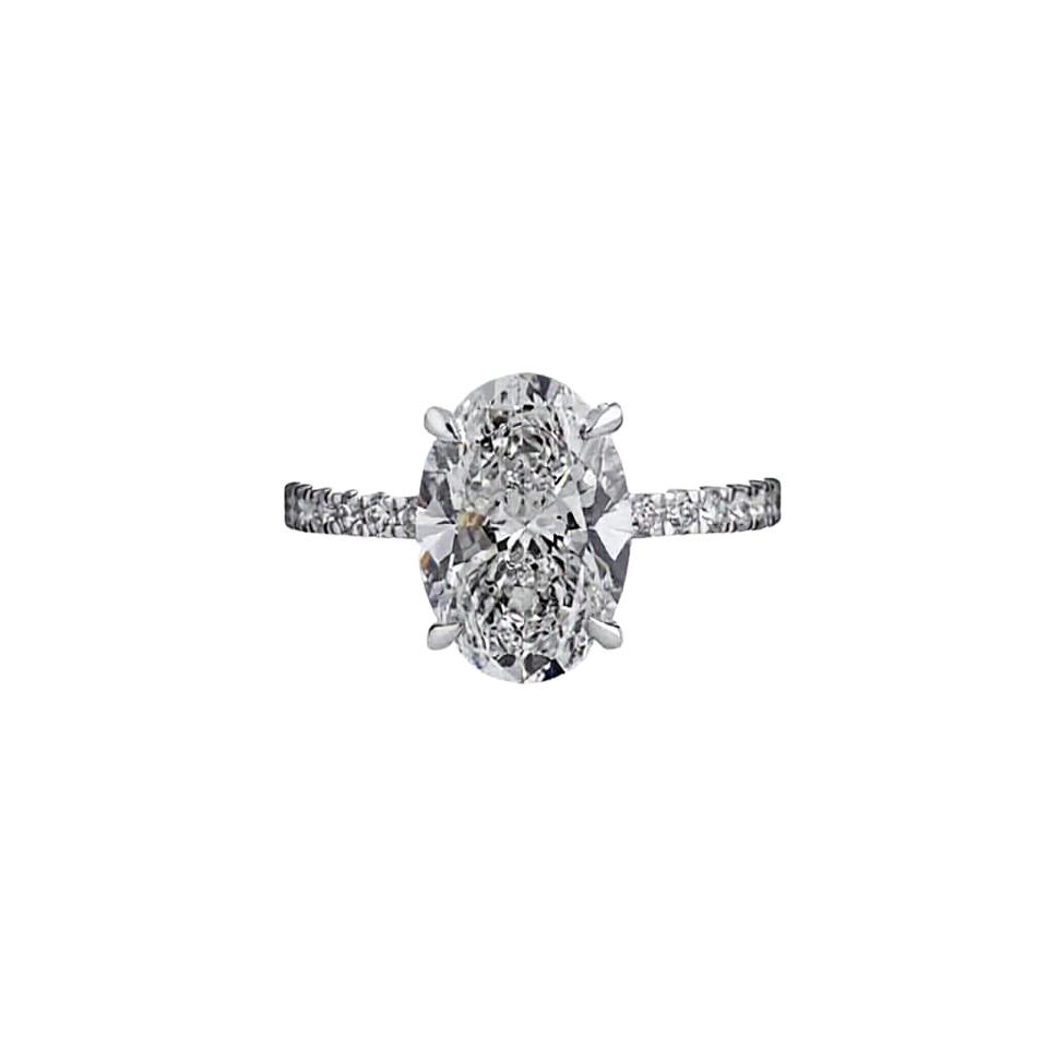 แหวนเพชรทิชยา ไดมอนด์ รับรองโดย IGI น้ำหนัก 6 กะรัต รูปทรงวงรี เพชรเพาะเลี้ยง สี E แหวนหมั้นสไตล์วินเทจ ประดับด้วยวงแหวนรอบนอกแบบซ่อน ทองคำขาว 14K