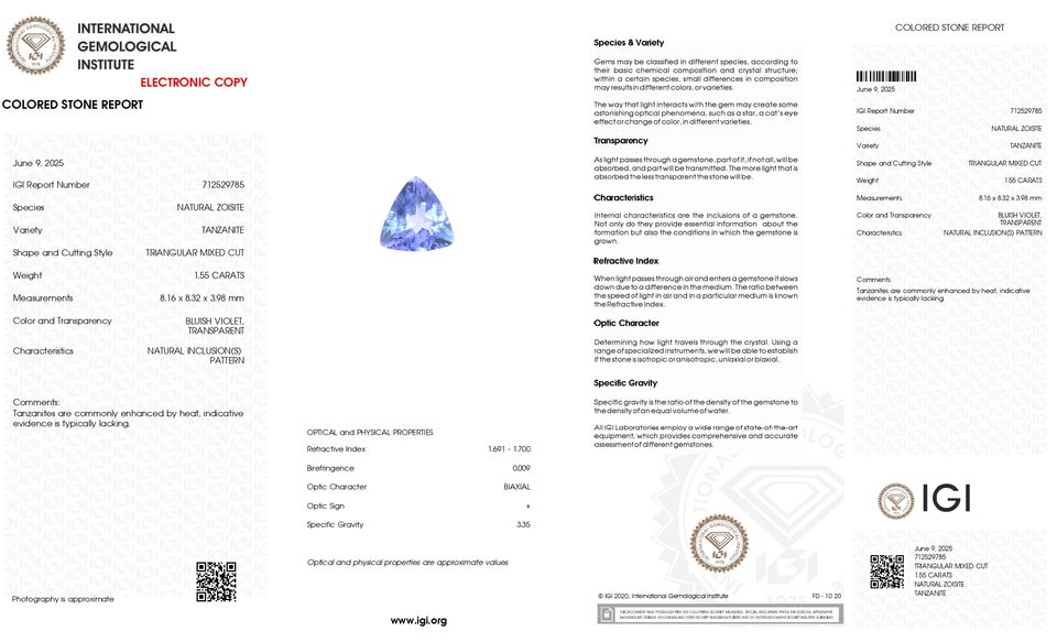 Igi Tanzanite tanzanite 8มม. เกรด AAA พลอย Tanzanite สีฟ้าม่วงคุณภาพสูงสำหรับการทำเครื่องประดับ