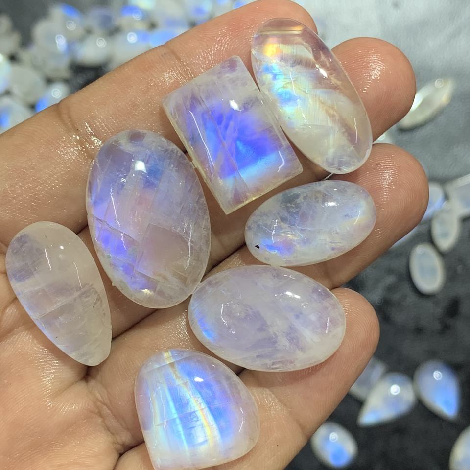 IGI Certified AAAAA Blue Rainbow Moonstone Jewelry High Technology Machine Cut Mix Cabochon Natural White No Treatment 100%