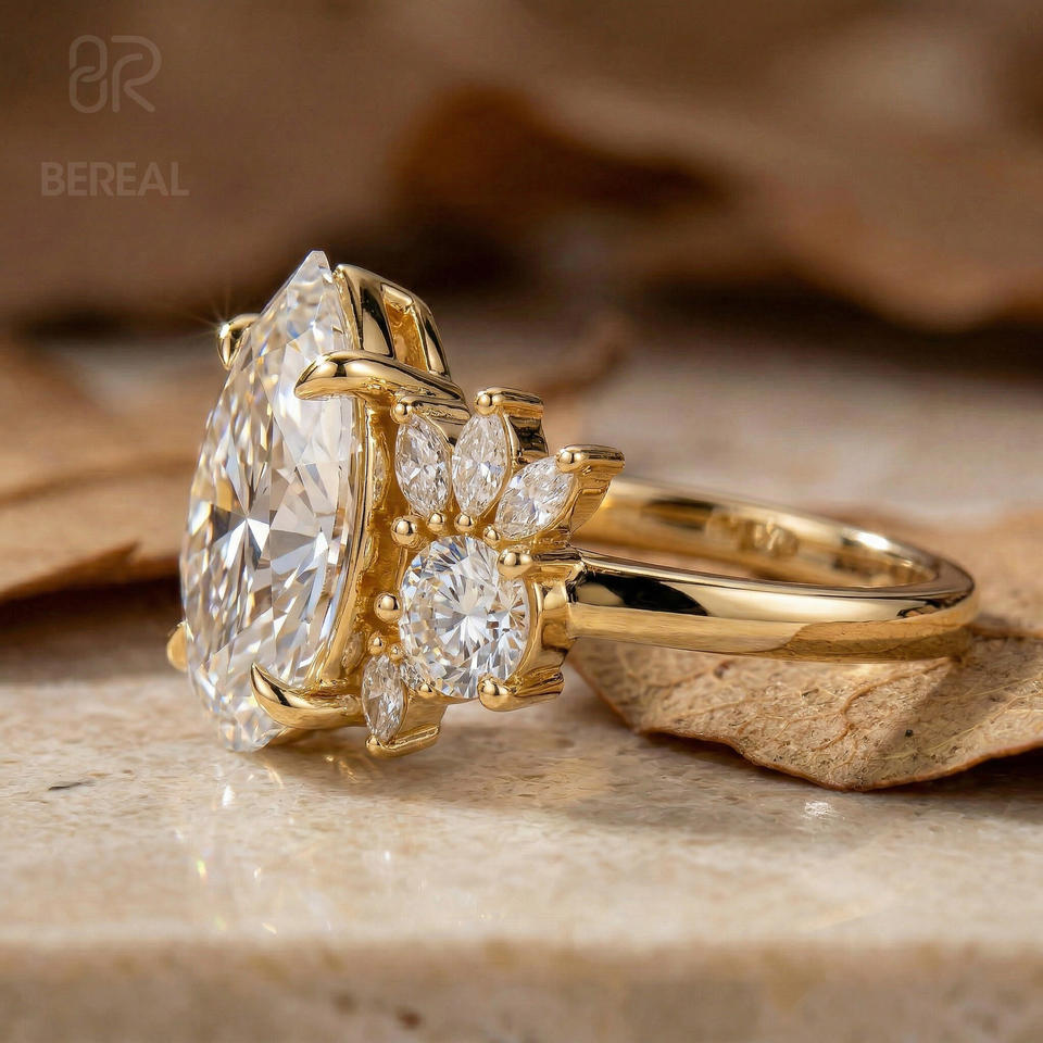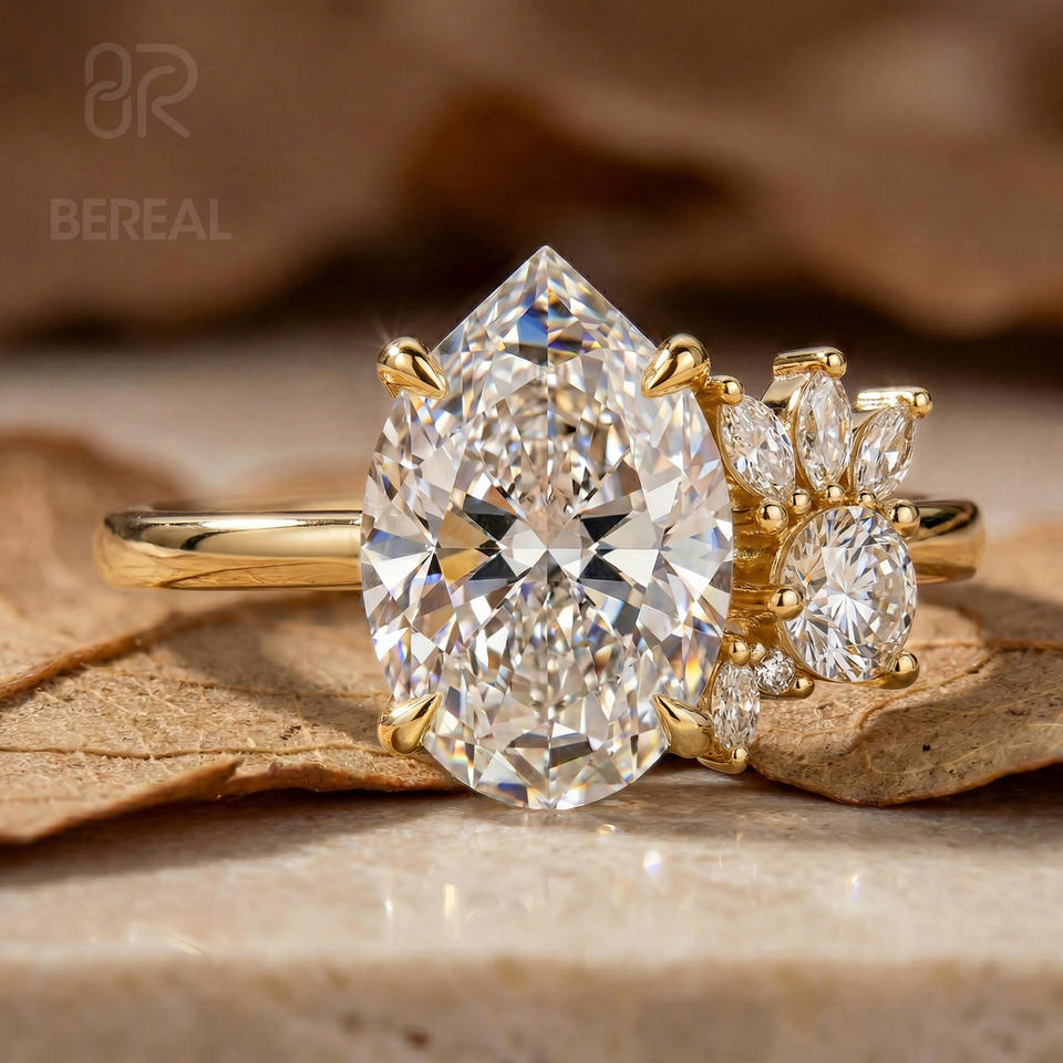 แหวนเพชรทรงลูกแพร์ VVS เพชร CVD HPHT ที่ได้รับการรับรองจาก IGI แหวนหมั้นเงินแท้ 925 ประดับเพชรสร้างในห้องปฏิบัติการ แหวนเพชรสำหรับผู้หญิง เครื่องประดับ