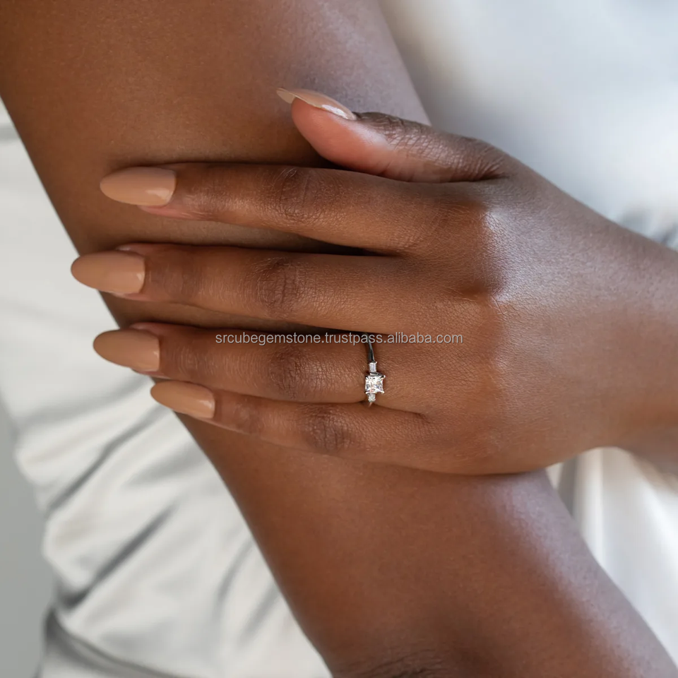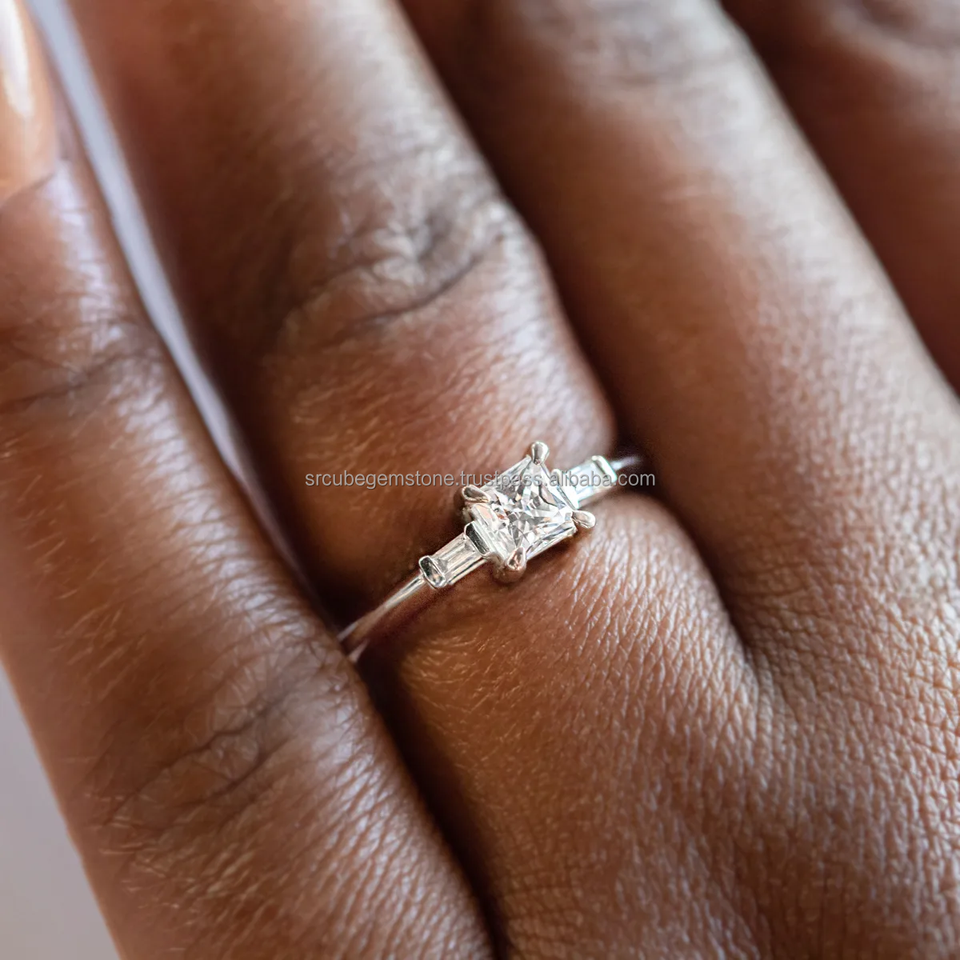Igi ได้รับการรับรอง CVD แหวนหมั้น S925ชุบทองด้วยเงินพลอย3เม็ดสำหรับเป็นของขวัญ