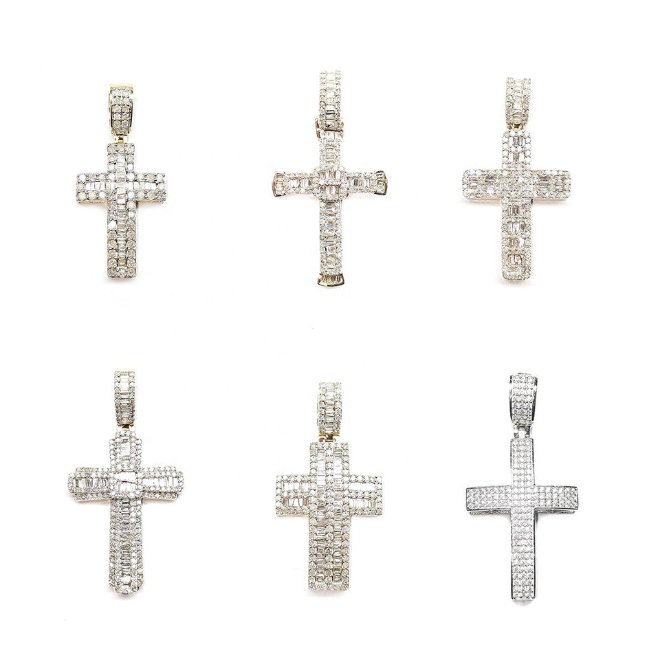 จี้เพชรแท้ทรงบาแกตต์ชุบทองคำขาวแบบฮิปฮอปประดับเพชร VVS ระดับ IGI Certified สำหรับผู้ชายและผู้หญิง