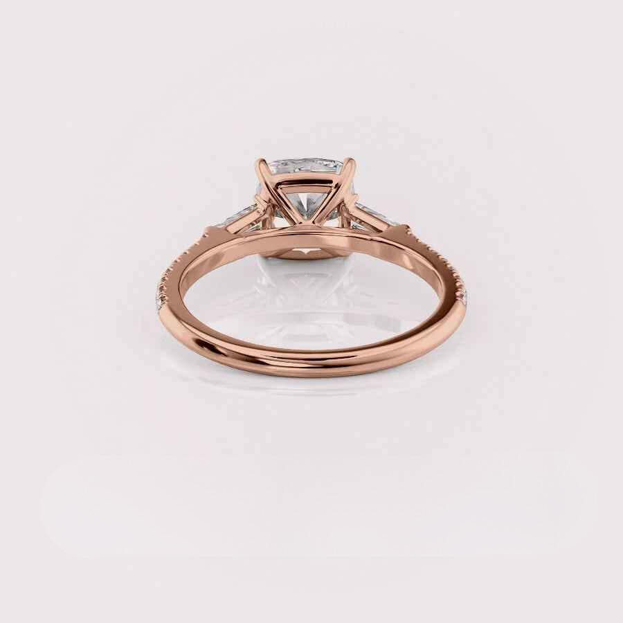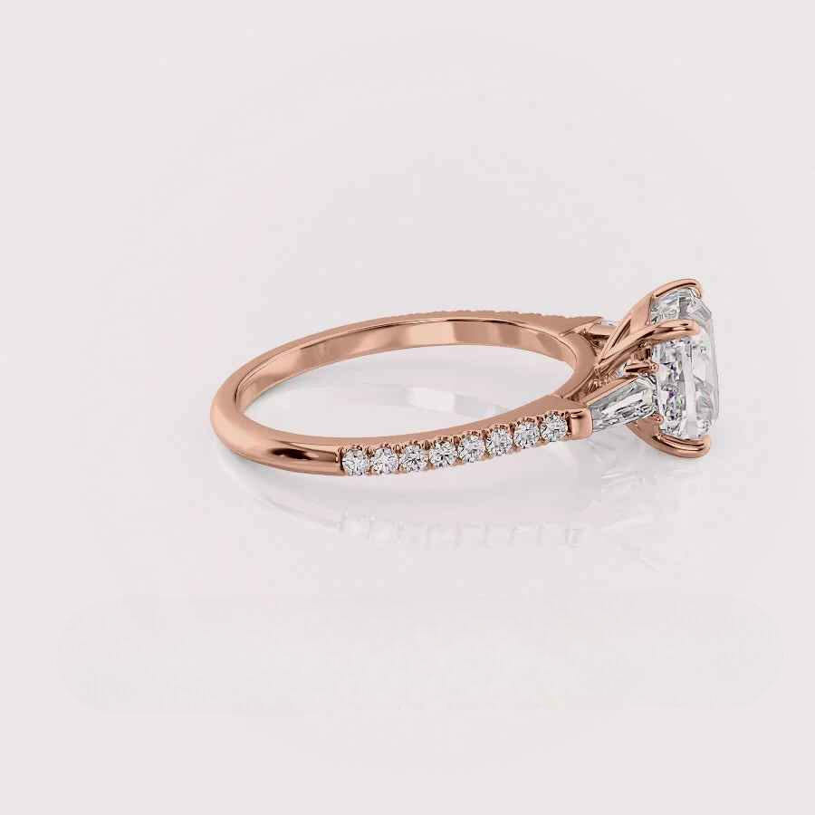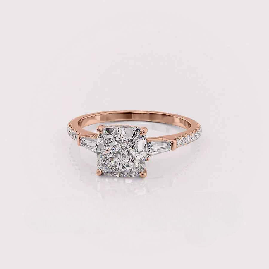 แหวนหมั้นเพชรทรงคุชชั่น ได้รับการรับรองจาก IGI เพชรสร้างในห้องปฏิบัติการ ทองคำขาว/โรสโกลด์ 14K ประดับเพชรทรงบาแกตต์ แหวนแต่งงาน