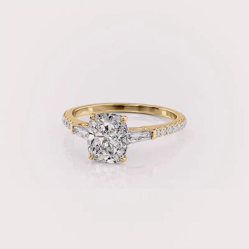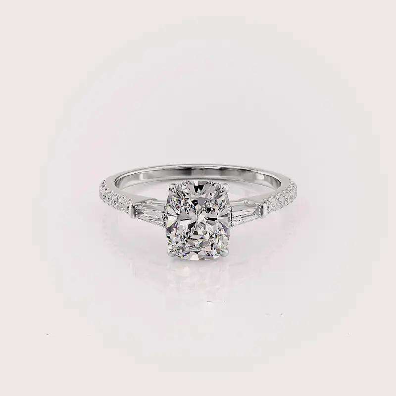 Keyword:Cushion Cut Lab Grown Diamond Baguette Side Stone Ring