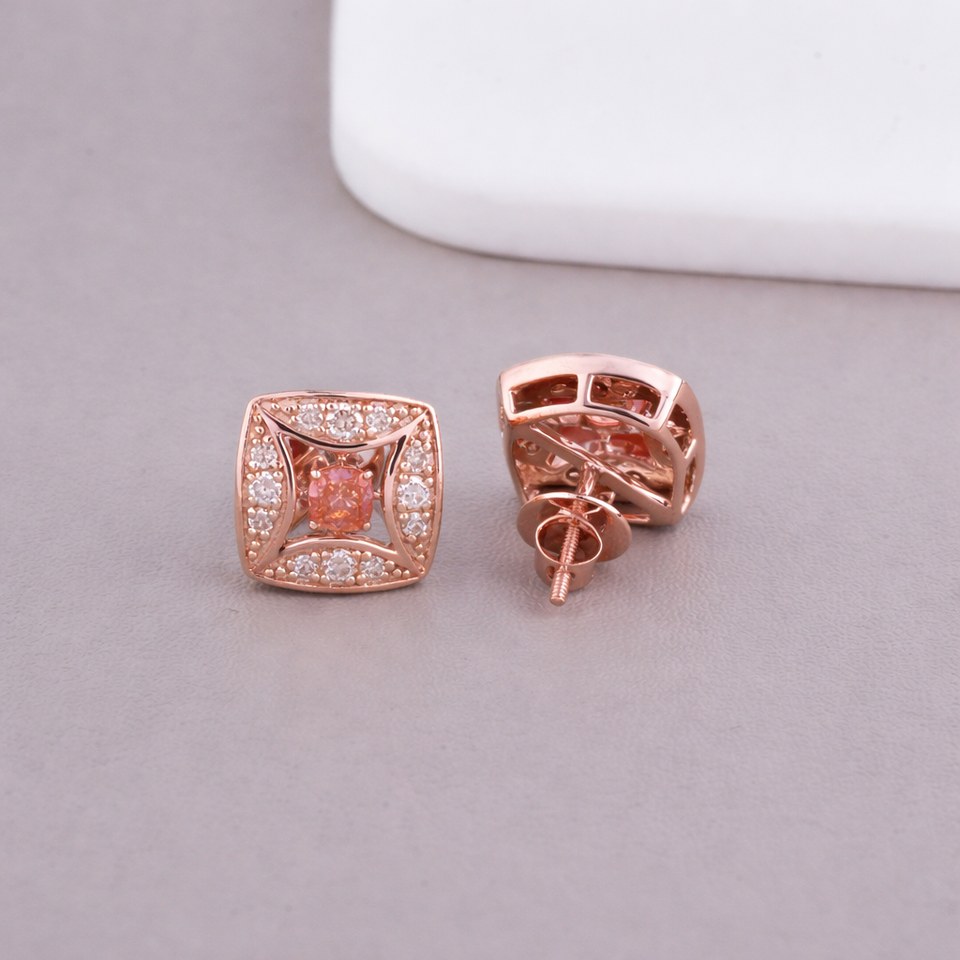 Igi ได้รับการรับรองเบาะตัดสีชมพูในห้องปฏิบัติการต่างหูเพชรทรงรัศมีทรงสี่เหลี่ยมสีขาว/เหลือง/โรสโกลด์