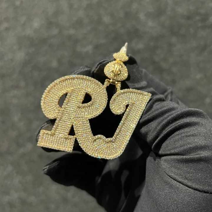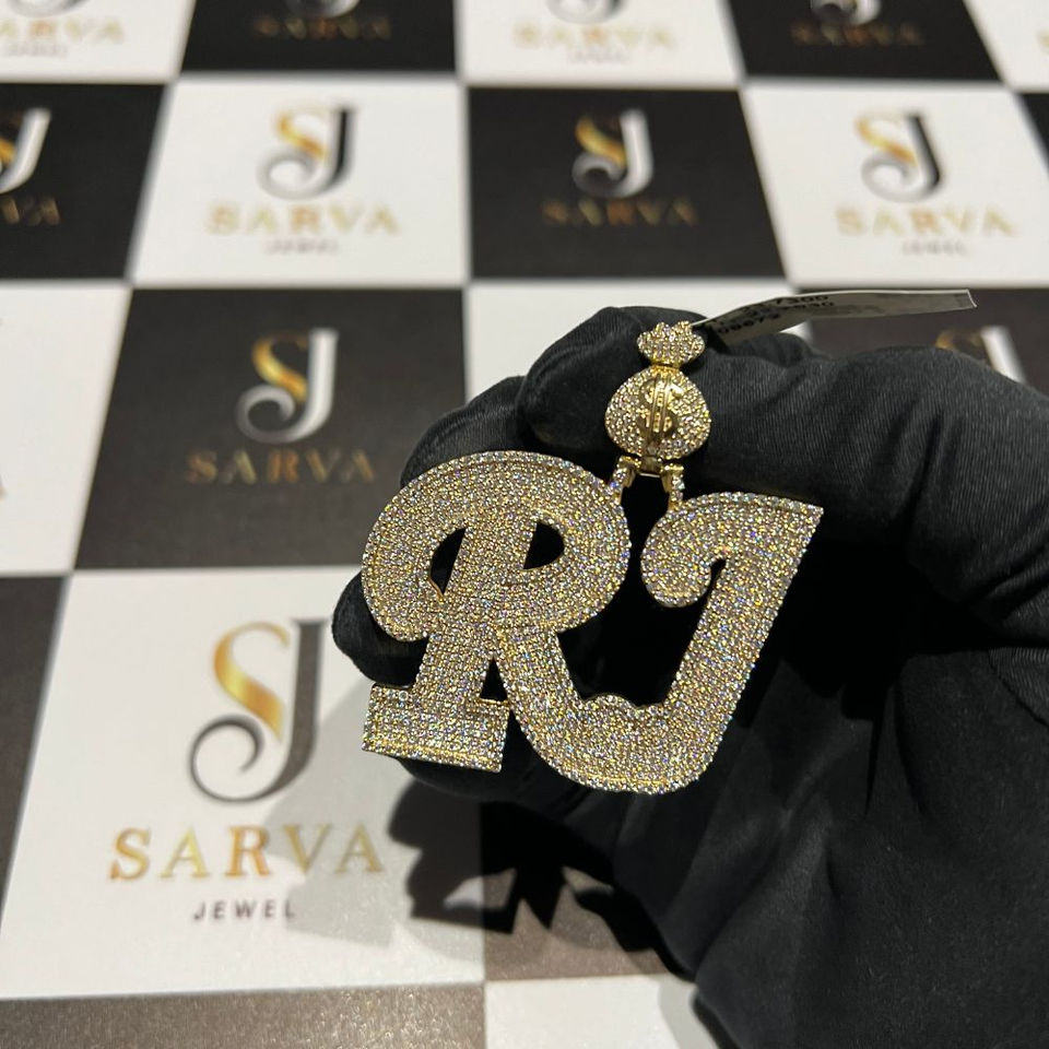 IGI Certified Diamond 14k White Solid Gold Hiphop Custom Name RJ Round Shape Real Diamond Pendant Jewelry for Man