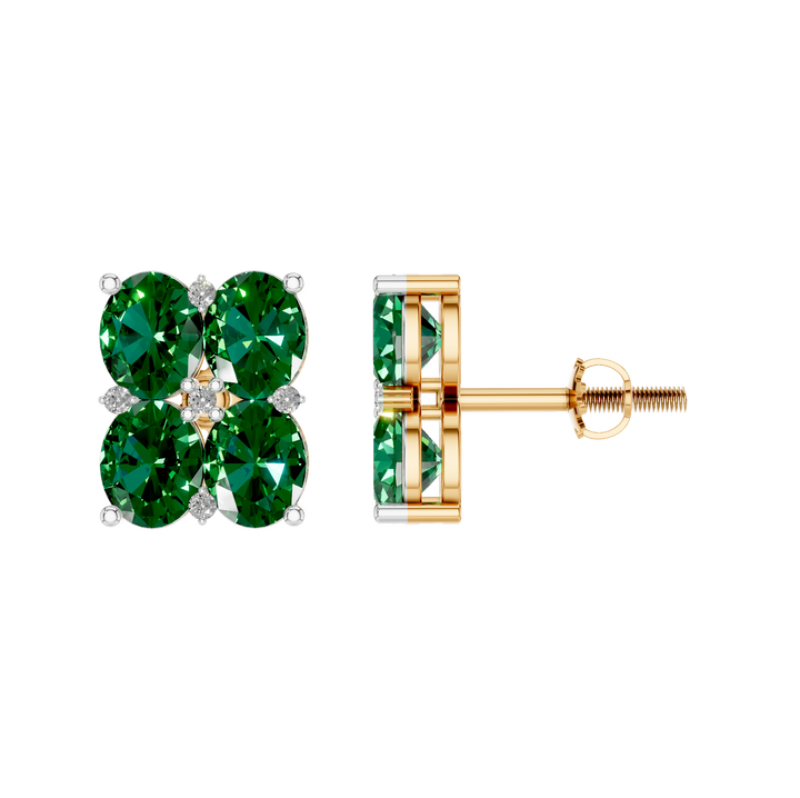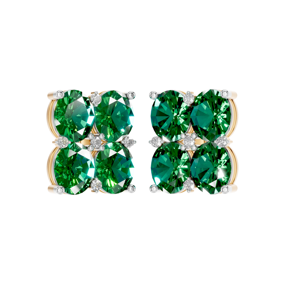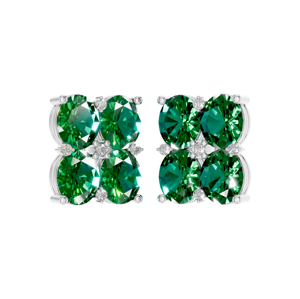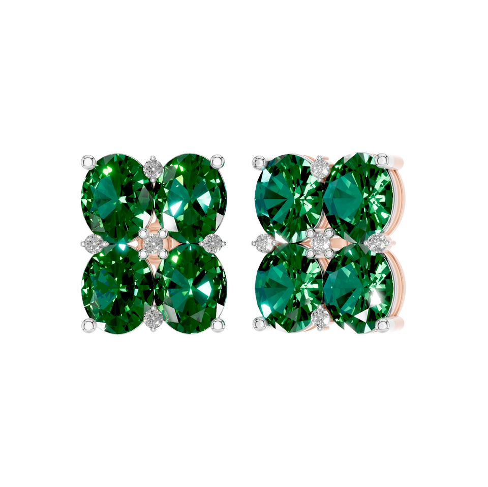 ต่างหูสตั๊ดทรงวงรีประดับมรกตลายดอกไม้ ประดับเพชร