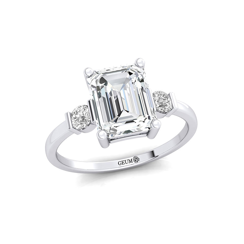 แหวนหมั้นเพชรเม็ดเดี่ยวทรงเหลี่ยมมรกต 14k ทองคำแท้ ได้รับการรับรองจาก IGI พร้อมเพชรข้าง 2 เม็ด แหวนสามเม็ดสุดหรู