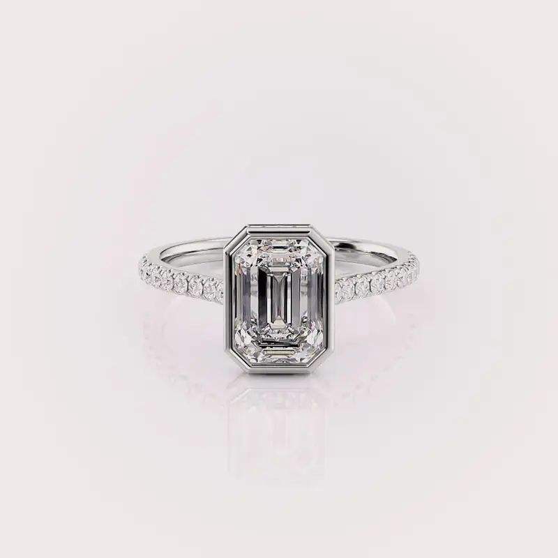 Keyword:Emerald Cut Bezel Set Diamond Engagement & Wedding Ring