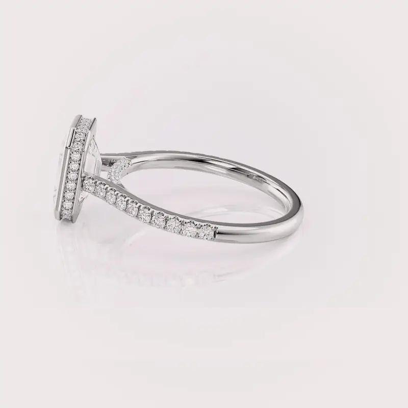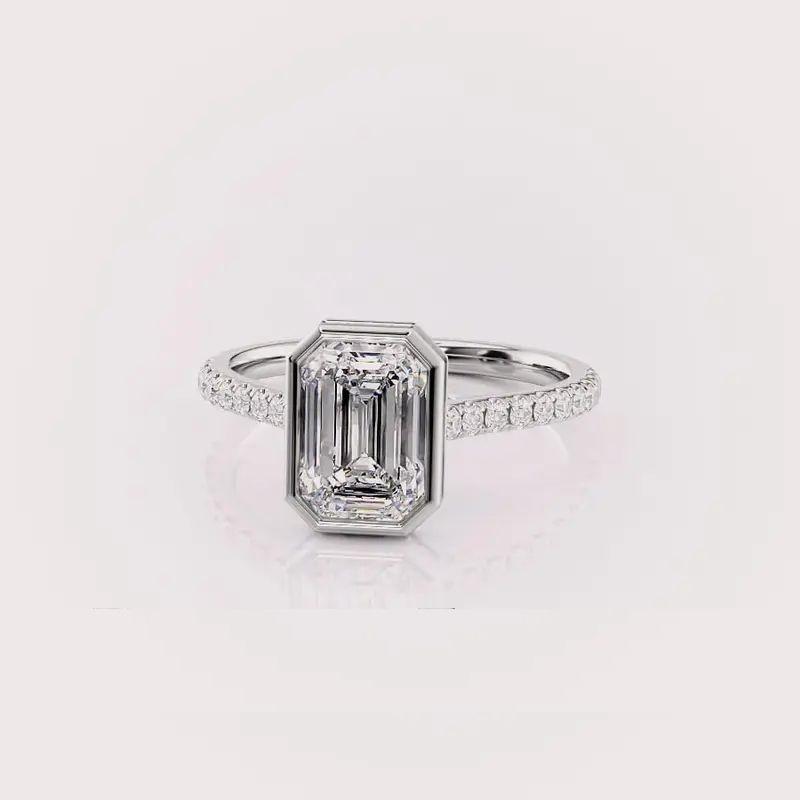 Igi ชุดฝาเพชรที่ปลูกในห้องแลปทรงมรกตแหวนสำหรับงานหมั้นและแต่งงานพร้อมสายหนังปูสีเงิน925ทึบที่ได้รับการรับรองจาก IGI
