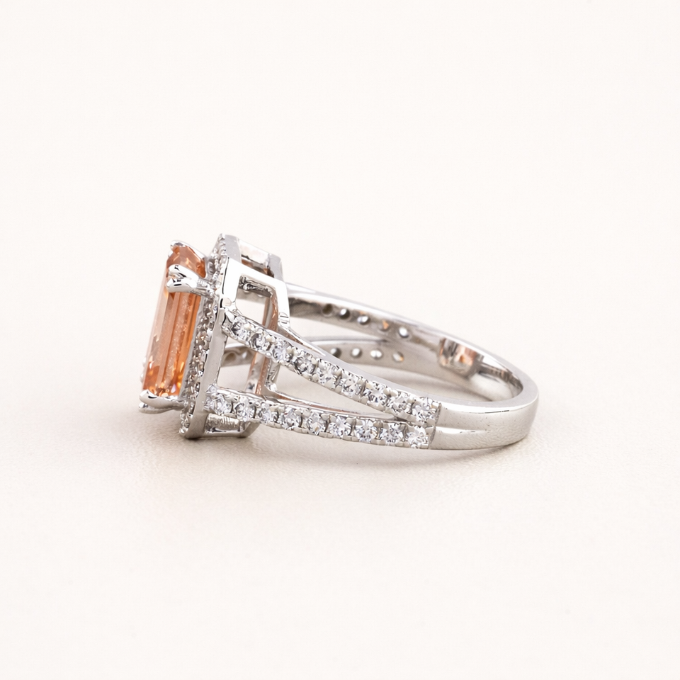 Keyword:IGI Certified Emerald Cut Orange Lab Diamond Ring with Pavé Shank