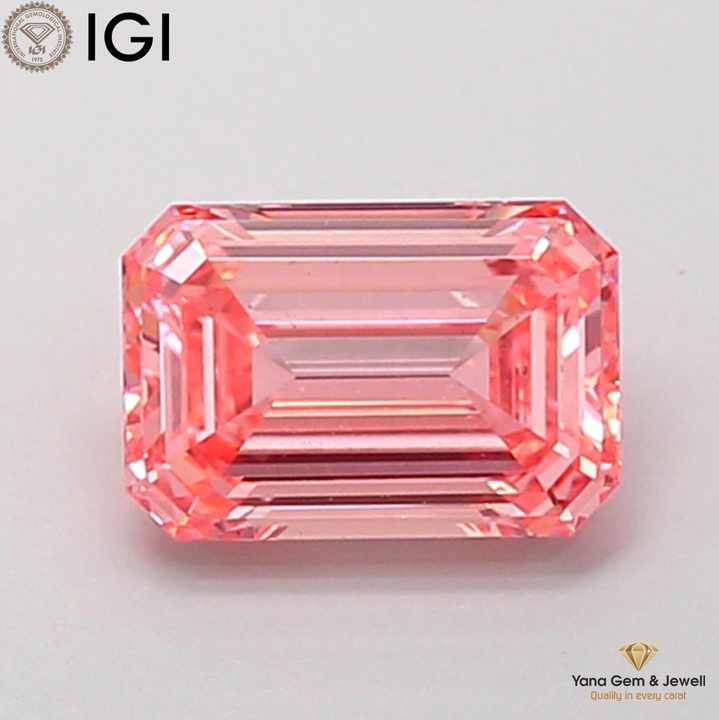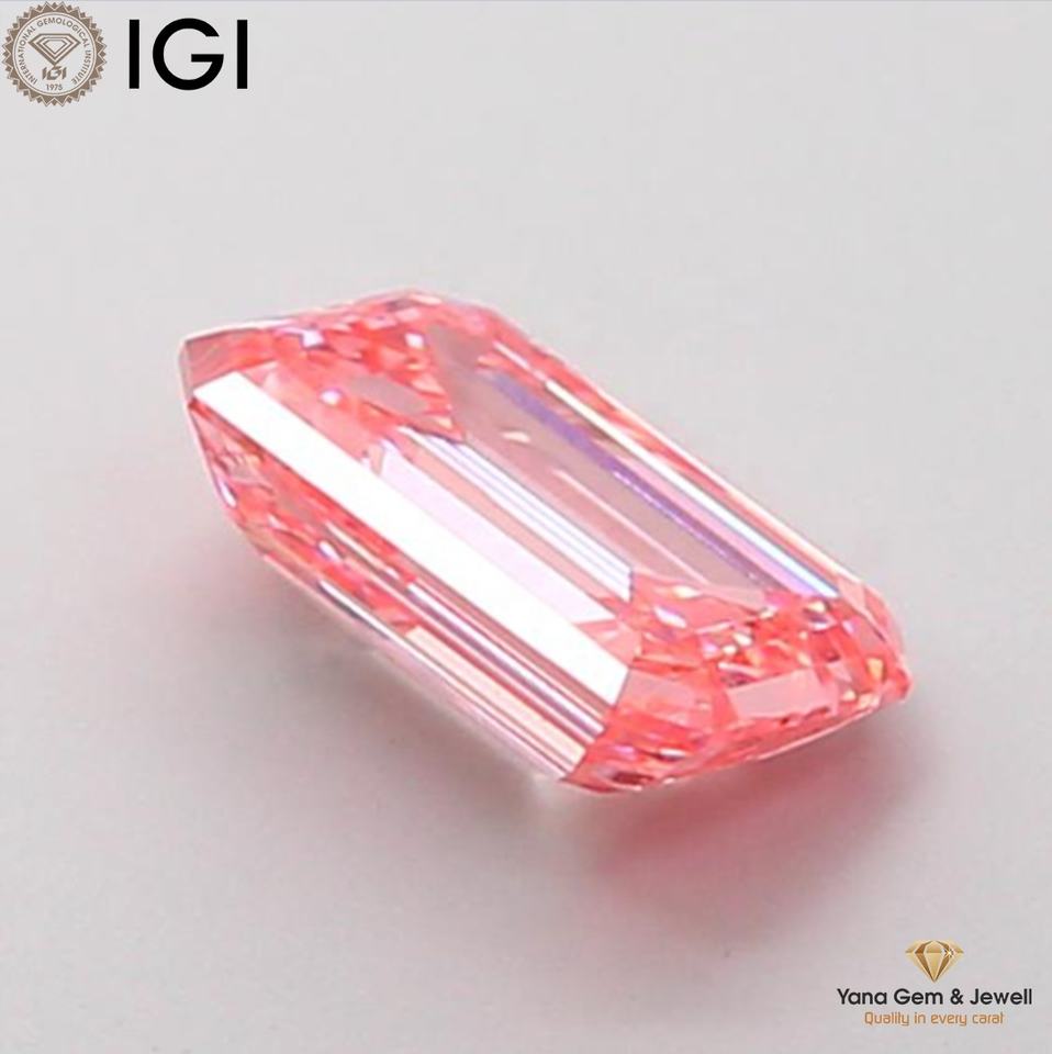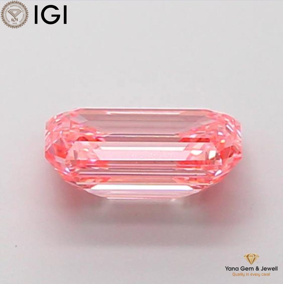 เพชรทรงมรกต 1.50 กะรัต ผลิตในห้องปฏิบัติการ ได้รับการรับรองจาก IGI ความใส VS2 สีชมพูสดใส พร้อมสำหรับการออกแบบตามสั่ง
