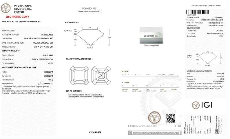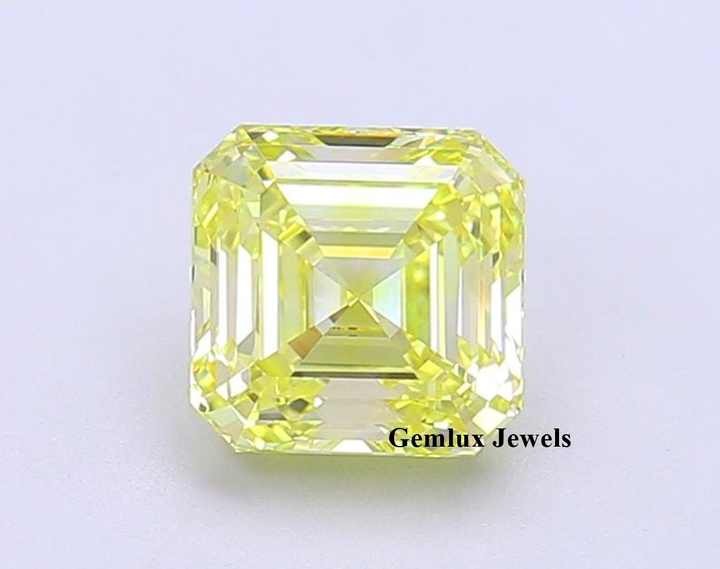เพชรทรงแอสเชอร์สีเหลืองเข้มแฟนซี 5.5 กะรัต ได้รับการรับรองจาก IGI ความสะอาดระดับ VS เพชรเพาะเลี้ยงในห้องปฏิบัติการ