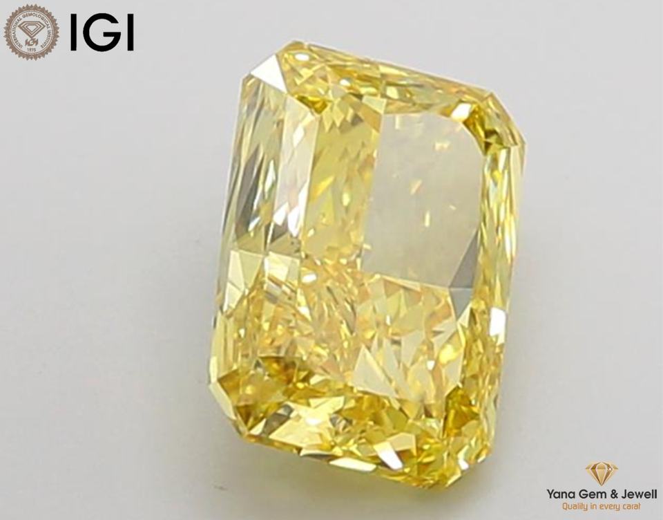 เพชร CVD ทรงเรเดียนท์ น้ำหนัก 2.50 กะรัต สีเหลืองแฟนซีสดใส ความสะอาดระดับ VS2 ได้รับการรับรองจาก IGI สำหรับแหวนเพชรเดี่ยวสุดหรู