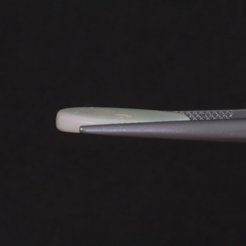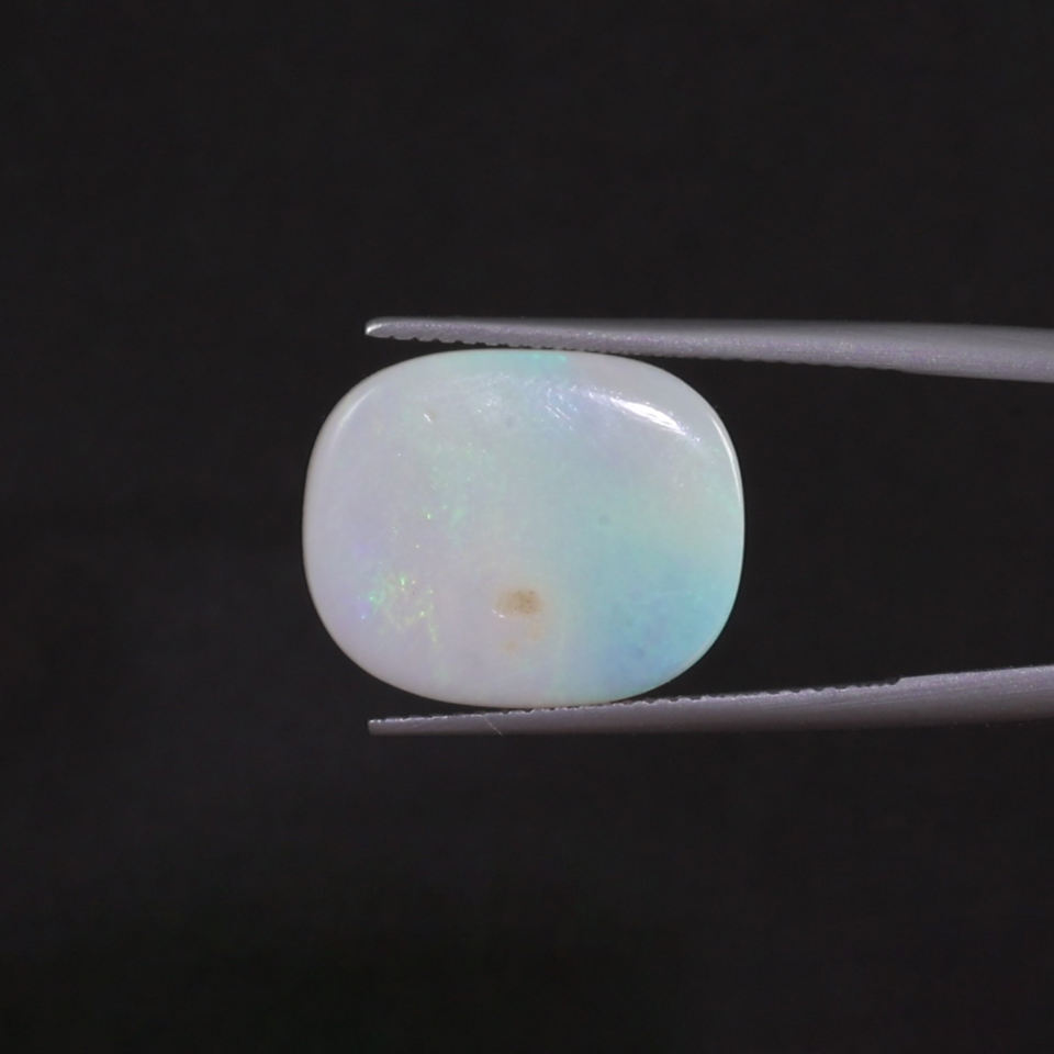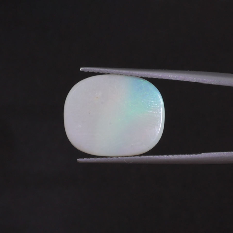 โอปอลธรรมชาติสีขาวคุณภาพดี ได้รับการรับรองจาก IGI น้ำหนัก 4.76 กะรัต รูปทรงคุชชั่น ขนาด 17x14 มม. ขัดเงาด้วยมือ ผ่านการเคลือบน้ำมันอ่อนๆ