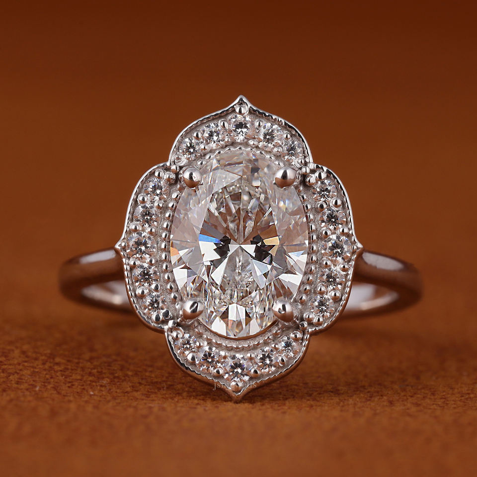 แหวนแต่งงานทองคำแท้ 14K ทรงวงรี คลาสสิก ประดับเพชร CVD ปลูกในห้องปฏิบัติการ ได้รับการรับรองจาก IGI สำหรับผู้หญิง