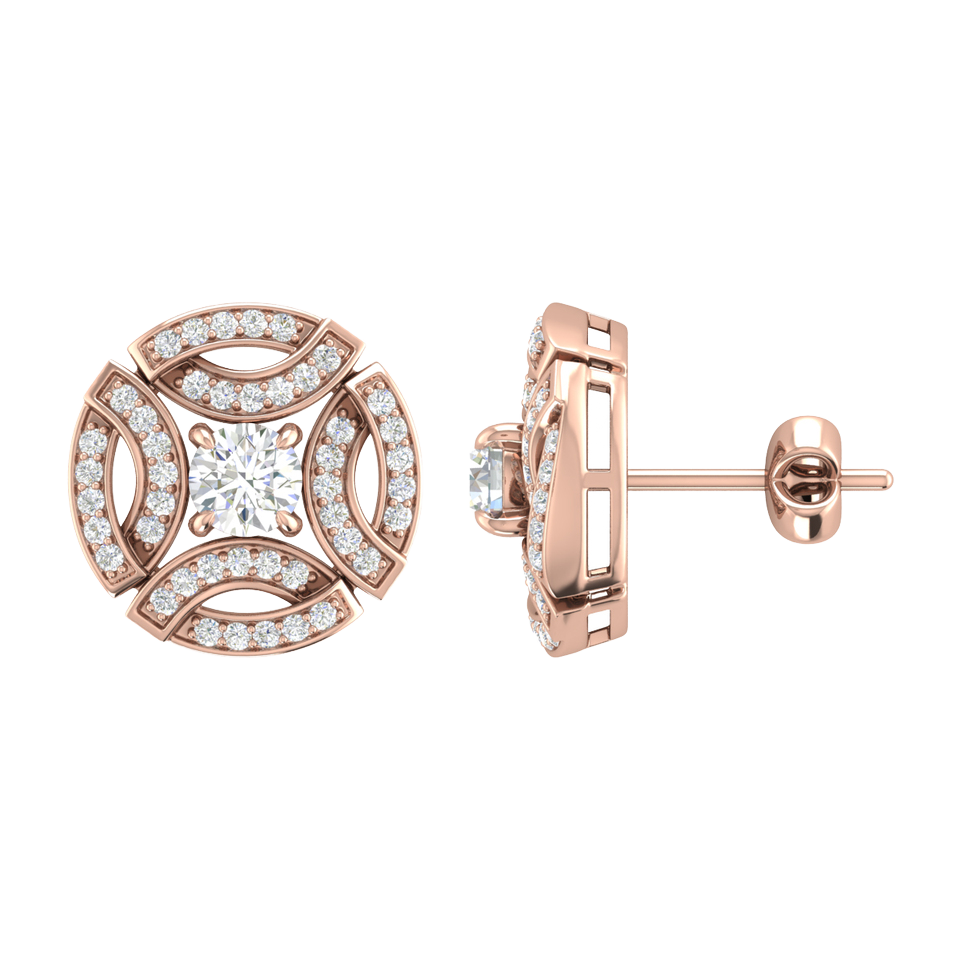 ได้รับการรับรองจาก IGI ต่างหูเพชรทำมือสไตล์วินเทจสำหรับผู้หญิงที่ปลูกในห้องปฏิบัติการทองคำ18K กุหลาบทองงานแต่งงานงานครบรอบ