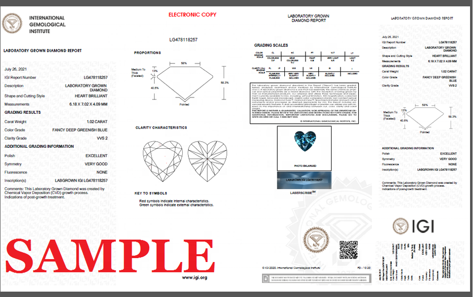 Igi ได้รับการรับรองว่าหัวใจโตเพชรแฟนซีสีฟ้าเข้มทรงหลวมเพชรสำหรับทำแหวนหมั้นจากผู้ผลิต