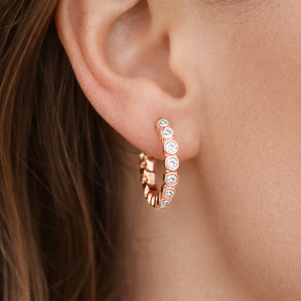 สไตล์ต่างหู:ต่างหูห่วงฝังเพชรแบบฝังขอบ