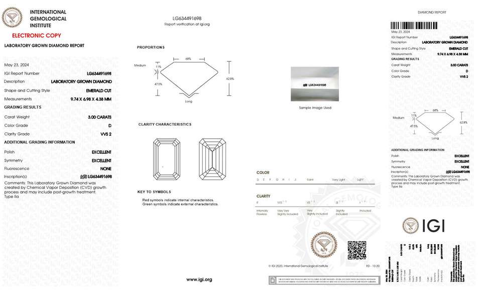 Igi ได้รับการรับรองจากห้องปฏิบัติการสร้างเพชร CVD สีขาวหลวมมรกตตัดสดใส3.00กะรัต D สีขาว VVS2ความคมชัดดีเยี่ยมขัดจำนวนมาก