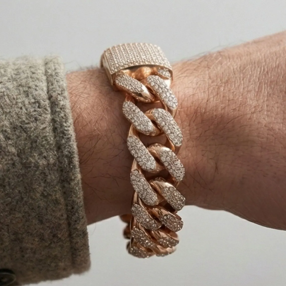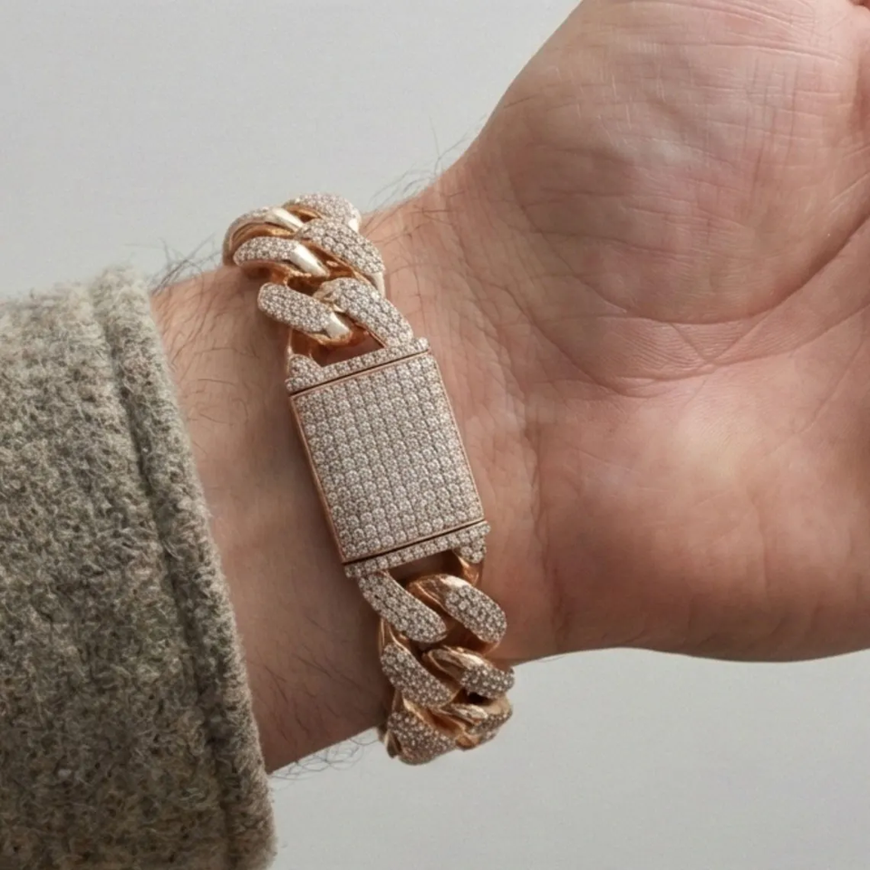 กำไลข้อมือเพชรคิวบันแบบฝังเพชรเต็มวง ได้รับการรับรองจาก IGI พร้อมเพชร VVS VS กำไลข้อมือแบบฮิปฮอป