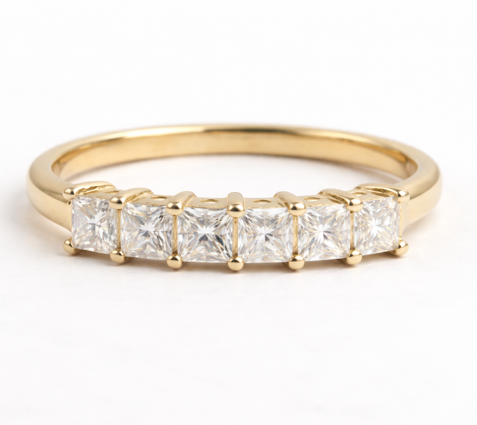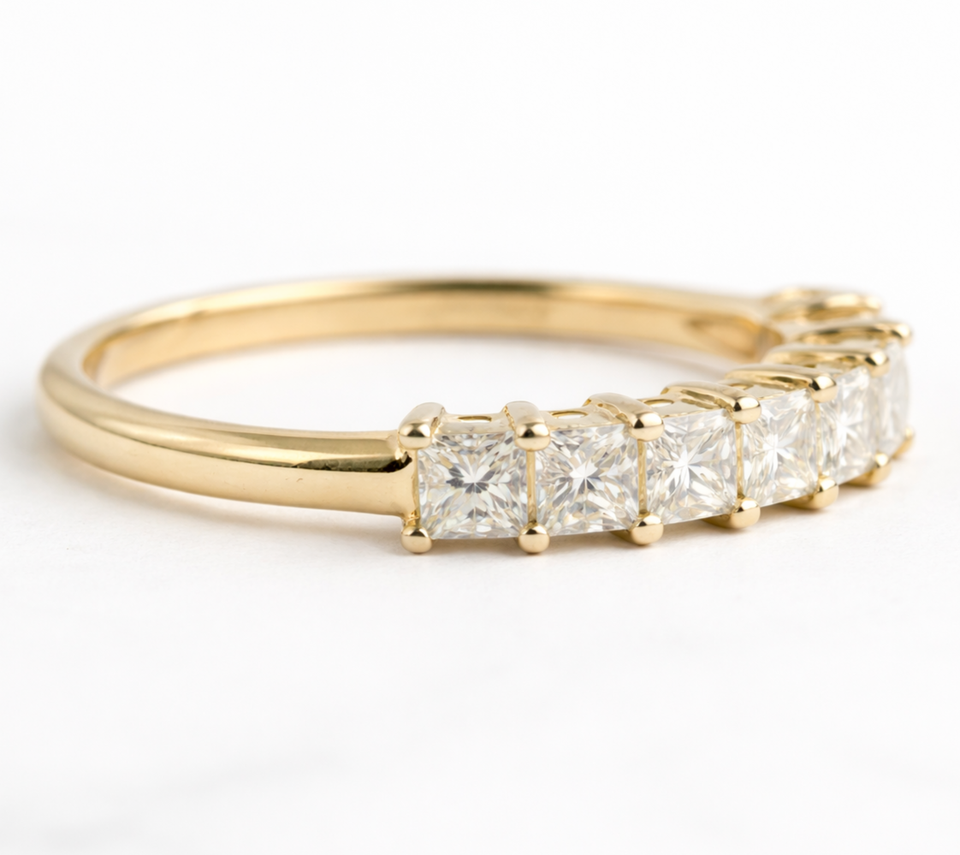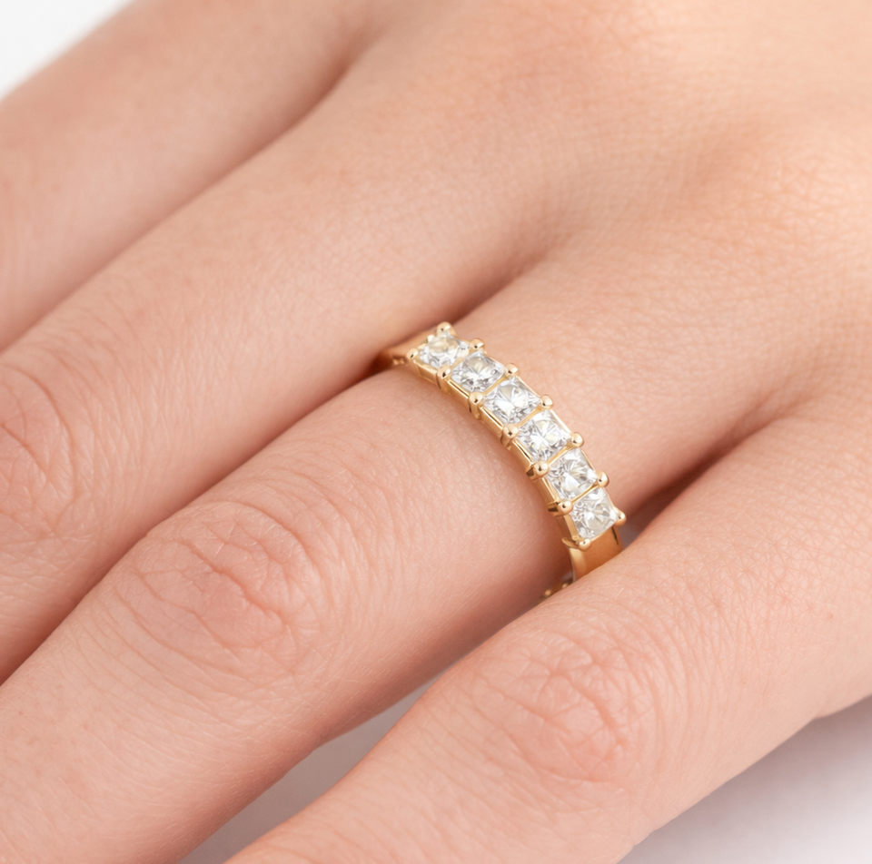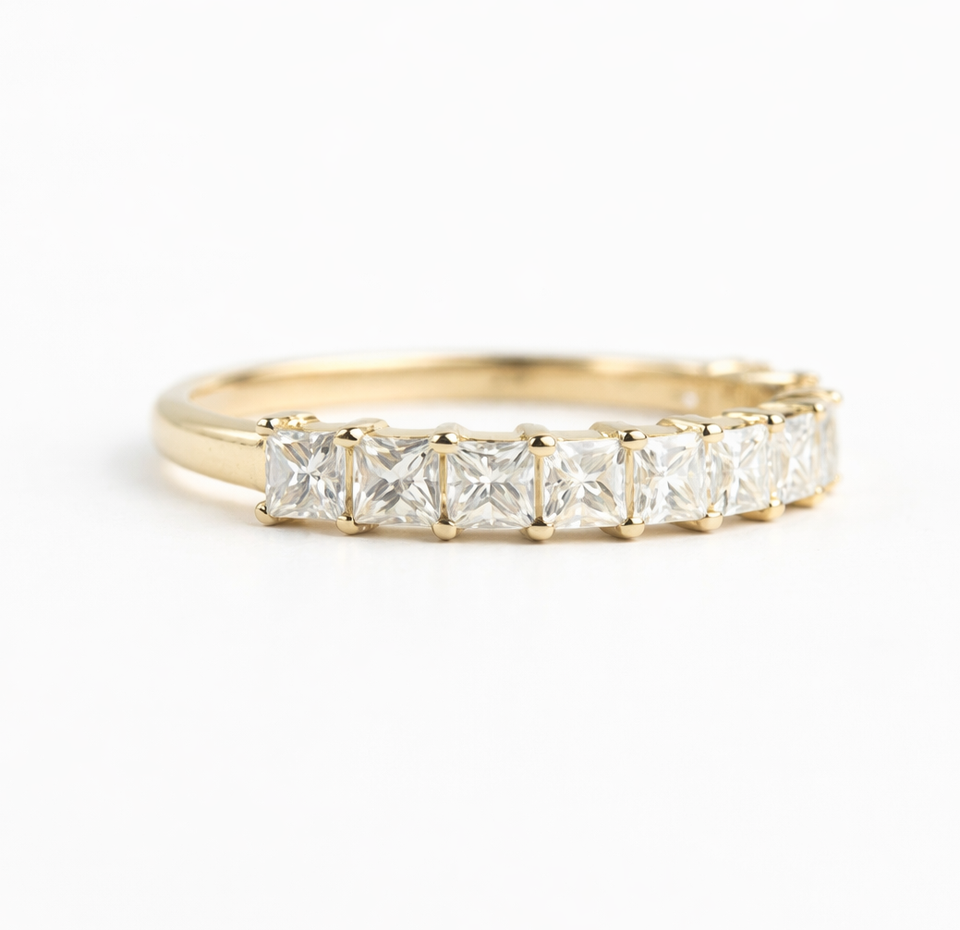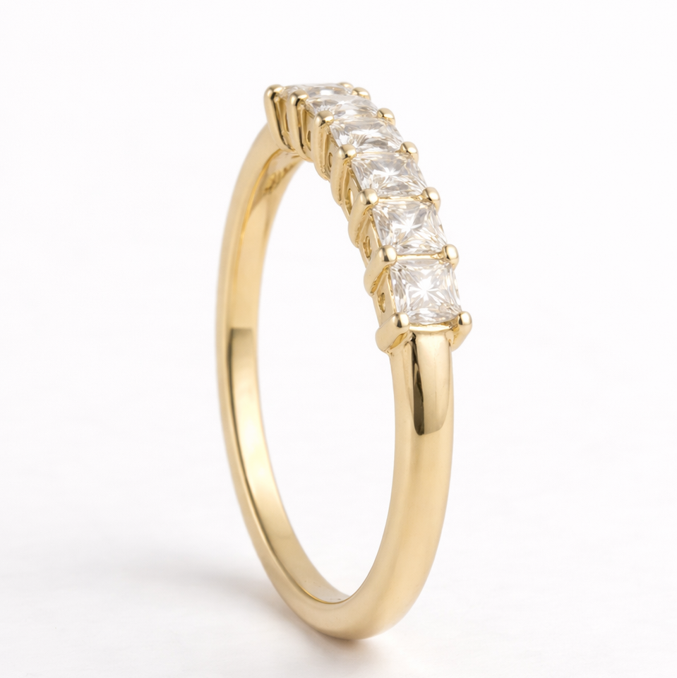 แหวนแต่งงานเพชรแล็บรับรองโดย IGI แหวนครึ่งวงกลมแบบเจ้าหญิง แหวนเพชรแล็บสำหรับวันครบรอบ แหวนทองคำแท้ 14K 18K