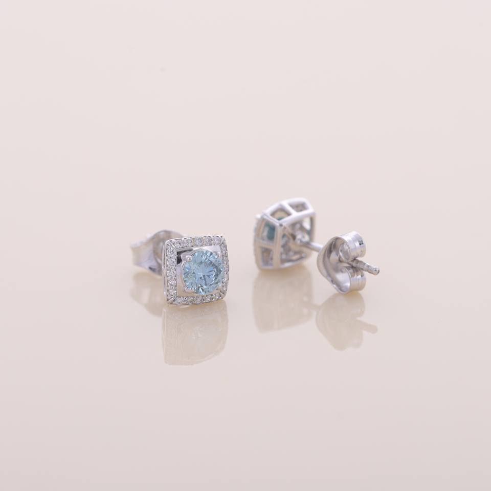 Keyword:Lab Grown Blue Round Diamond Halo Stud Earrings