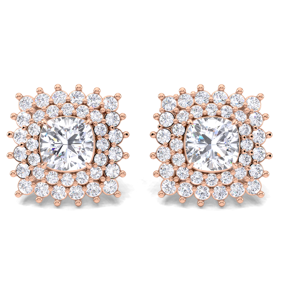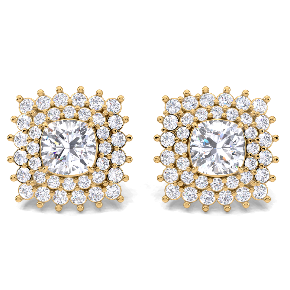 IGI Certified Lab Grown Diamond Cushion Cut Halo Stud Earrings 14K Yellow / White / Rose Gold Double Halo Diamond Earrings
