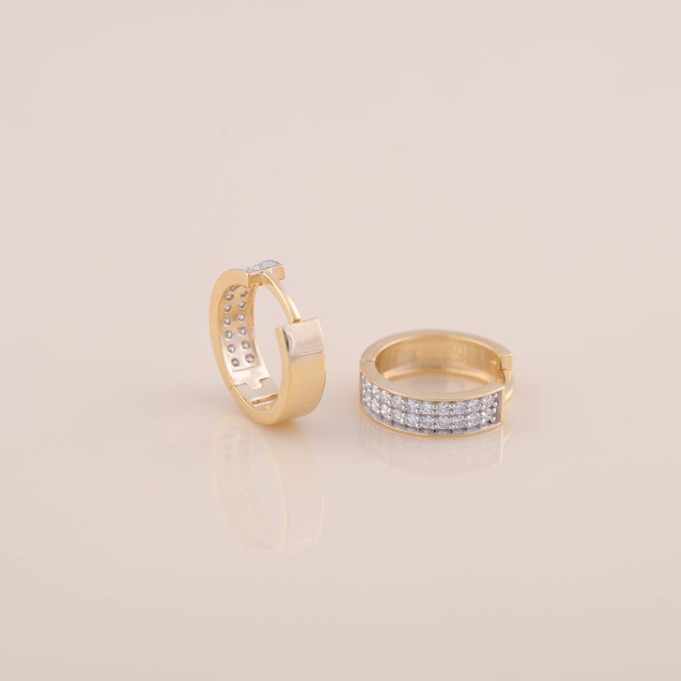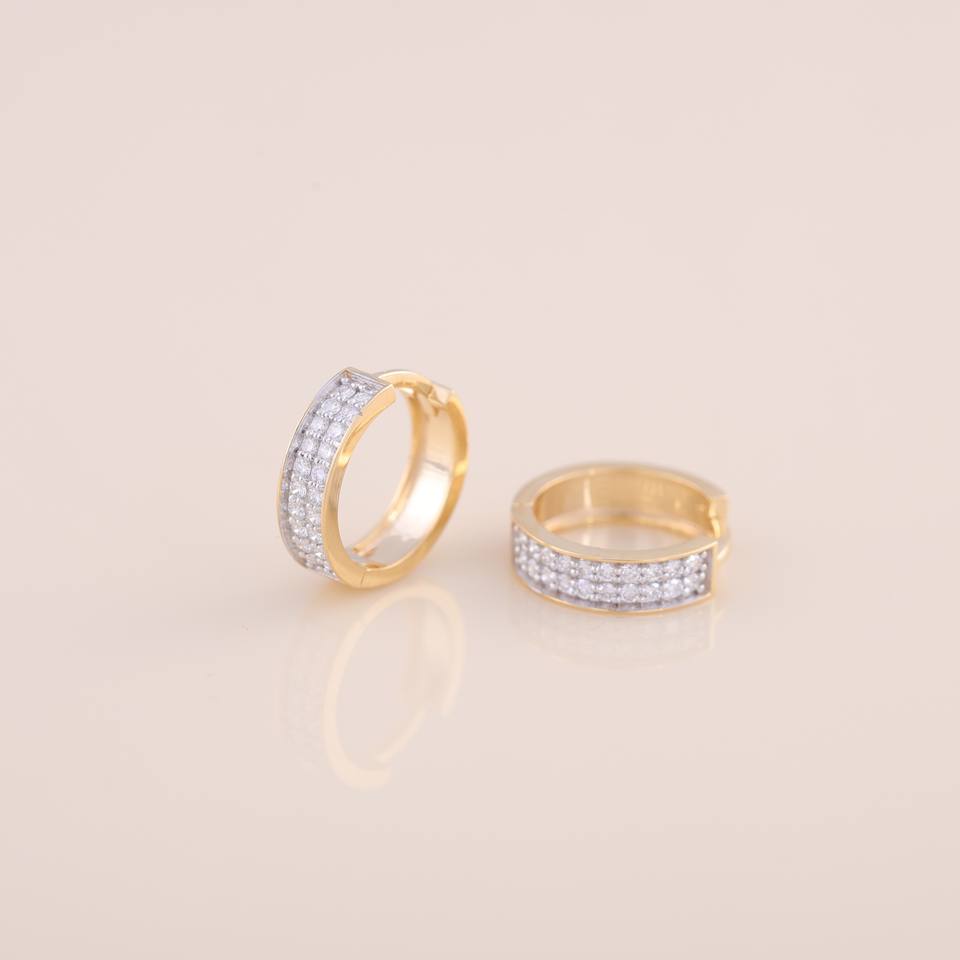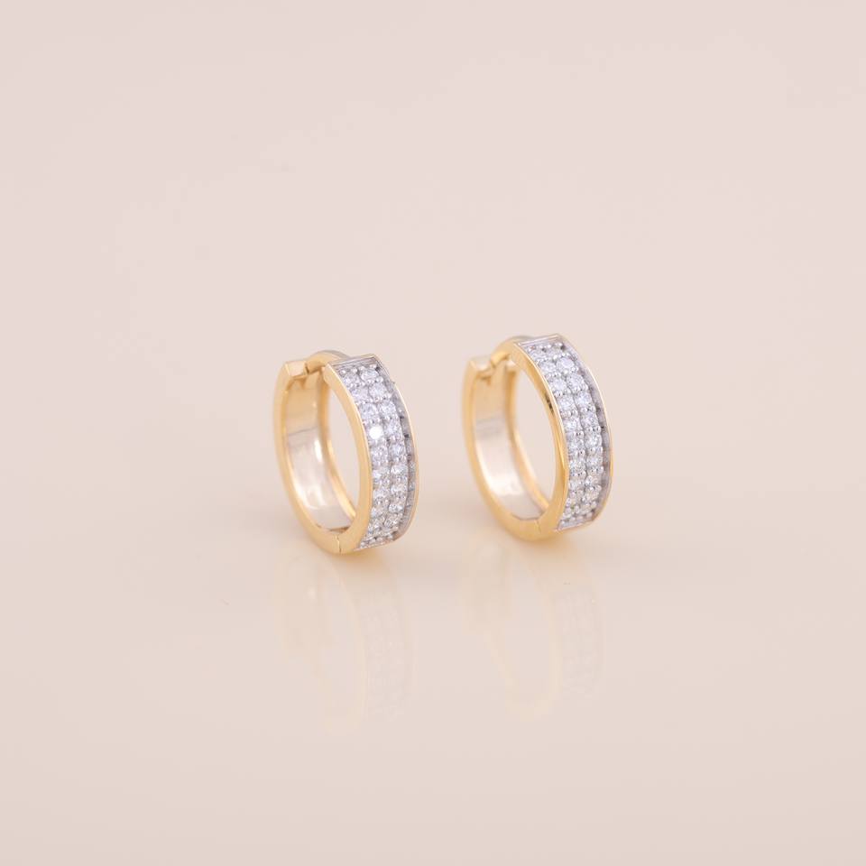 ต่างหูห่วงเพชรเพาะเลี้ยงในห้องปฏิบัติการที่ได้รับการรับรองจาก IGI แบบสองแถวประดับเพชร ต่างหูห่วงแบบ Huggie ทอง 9KT สีเหลือง / ขาว และสีโรสโกลด์สำหรับผู้หญิง