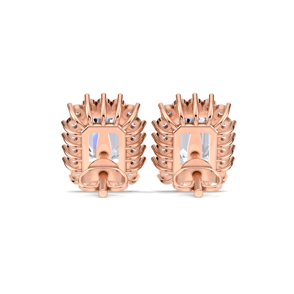 ต่างหูเพชรทรงเหลี่ยมมรกตแบบ Halo ประดับเพชรเพาะเลี้ยงในห้องปฏิบัติการที่ได้รับการรับรองจาก IGI ตัวเรือนทอง 14K สีเหลือง/ขาว/โรสโกลด์