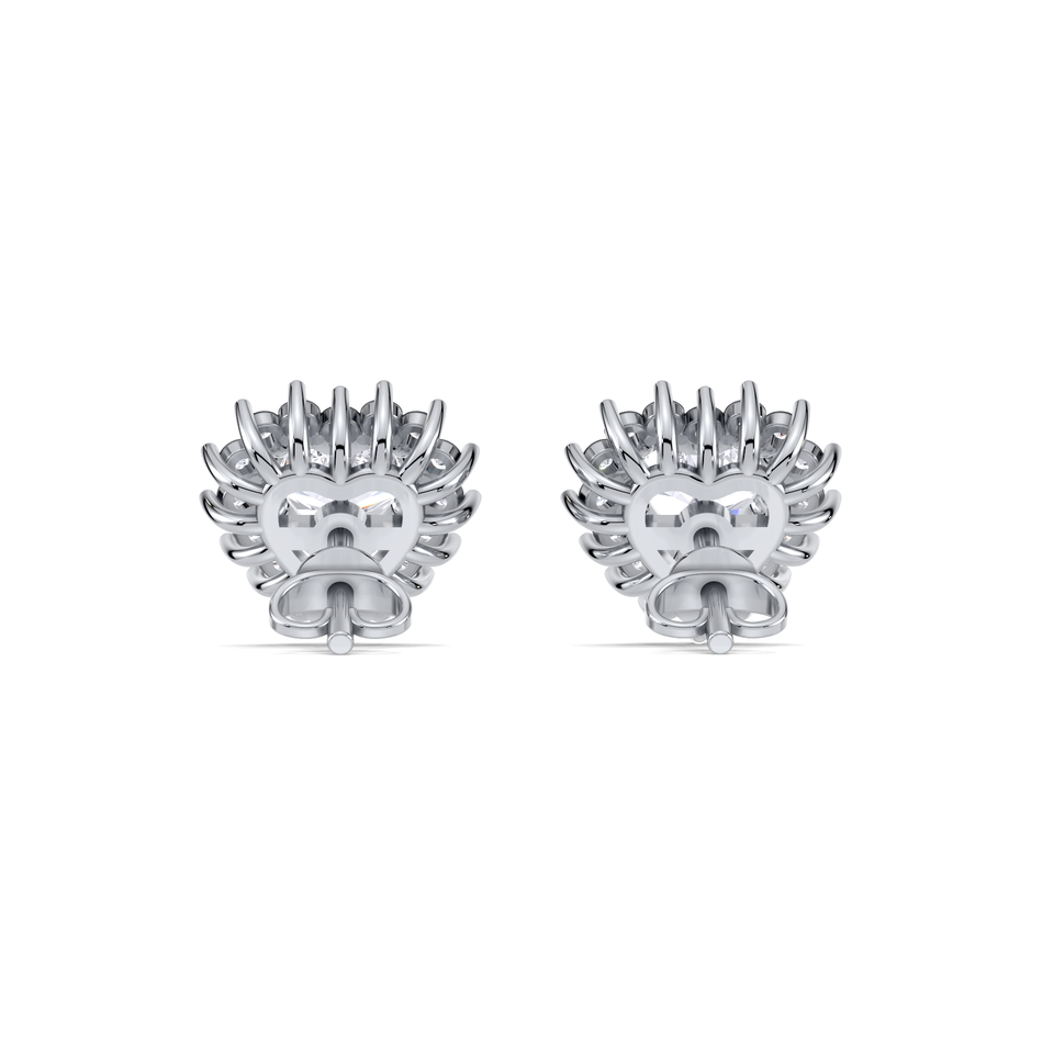 Heart Cut Double Halo Diamond Stud Earrings