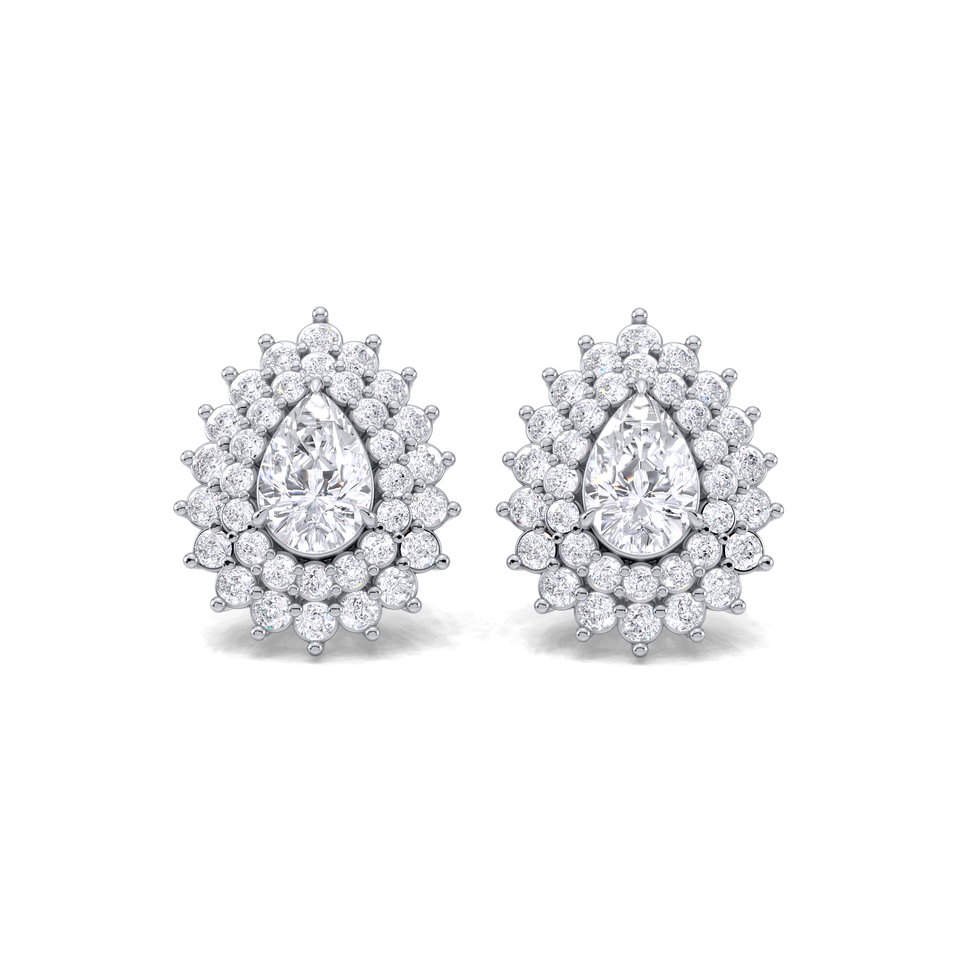 Pear Cut Double Halo Diamond Stud Earrings