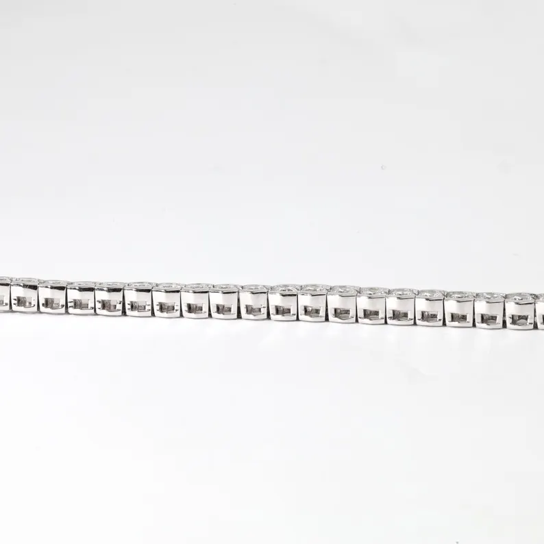 สร้อยข้อมือเพชรเทียม IGI Certified Lab Grown Diamond ทรงกลม ตัวเรือนทอง 18K ฝังแบบครึ่งขอบ ประดับพลอยประจำเดือนเมษายน งานแฮนด์เมด เครื่องประดับเจ้าสาว