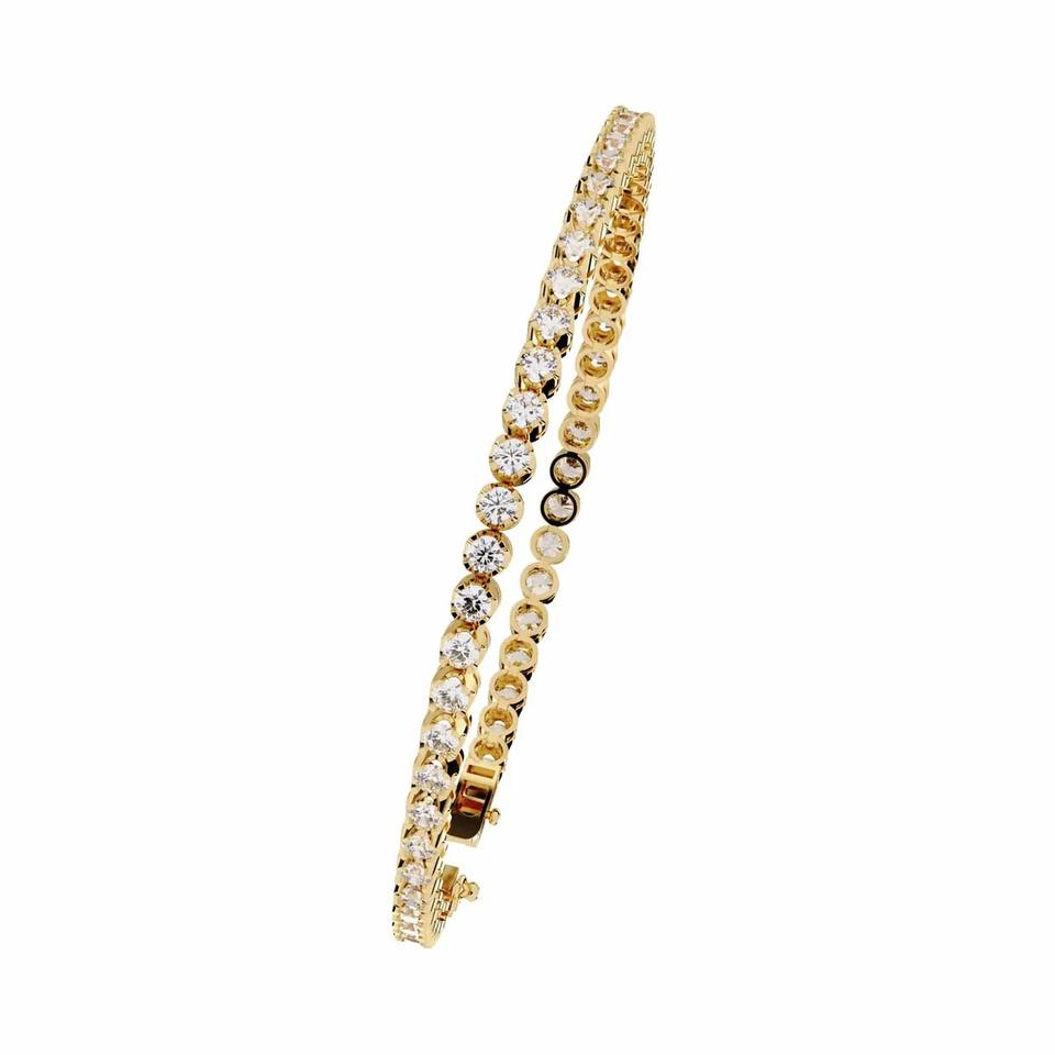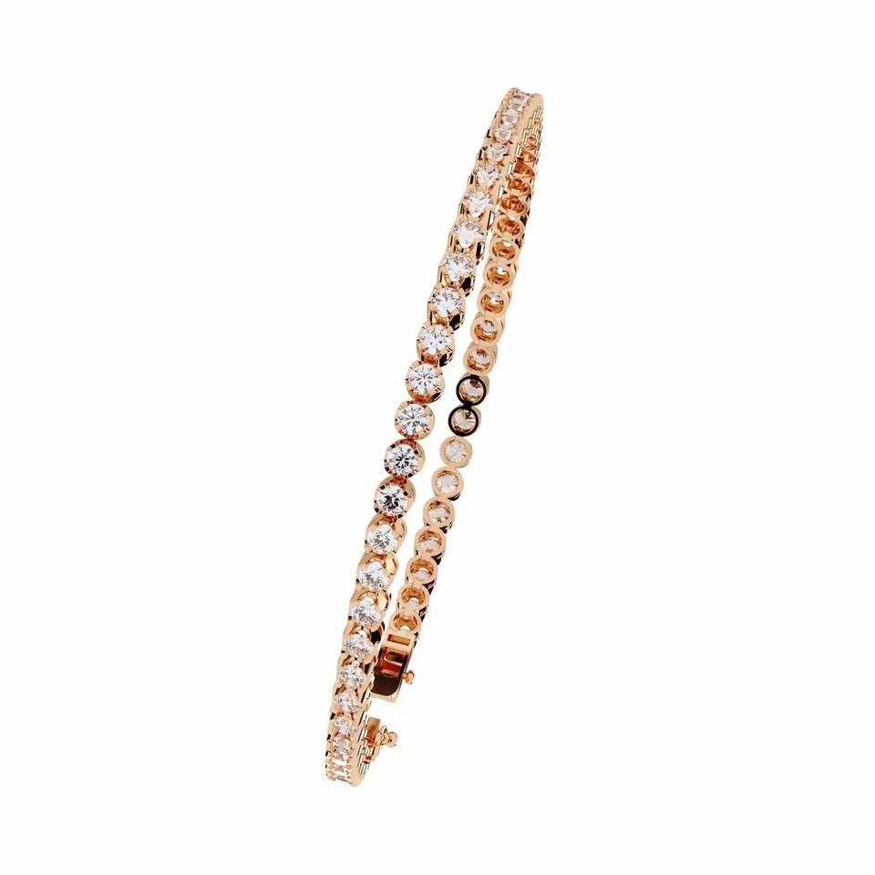 สร้อยข้อมือเพชรทรงกลมสองแถวแบบเทนนิส ได้รับการรับรองจาก IGI ผลิตในห้องปฏิบัติการ ตัวเรือนทอง 9K สีเหลือง / ขาว / โรสโกลด์