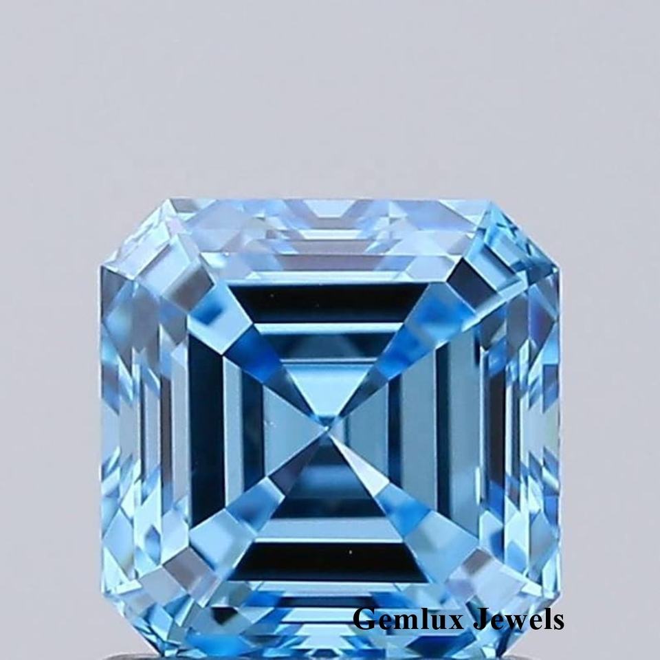 เพชรหลวมเพาะเลี้ยงในห้องปฏิบัติการ รับรองโดย IGI สีฟ้าสดใส 8 กะรัต ทรง Asscher ความสะอาดระดับ VS สำหรับทำแหวน